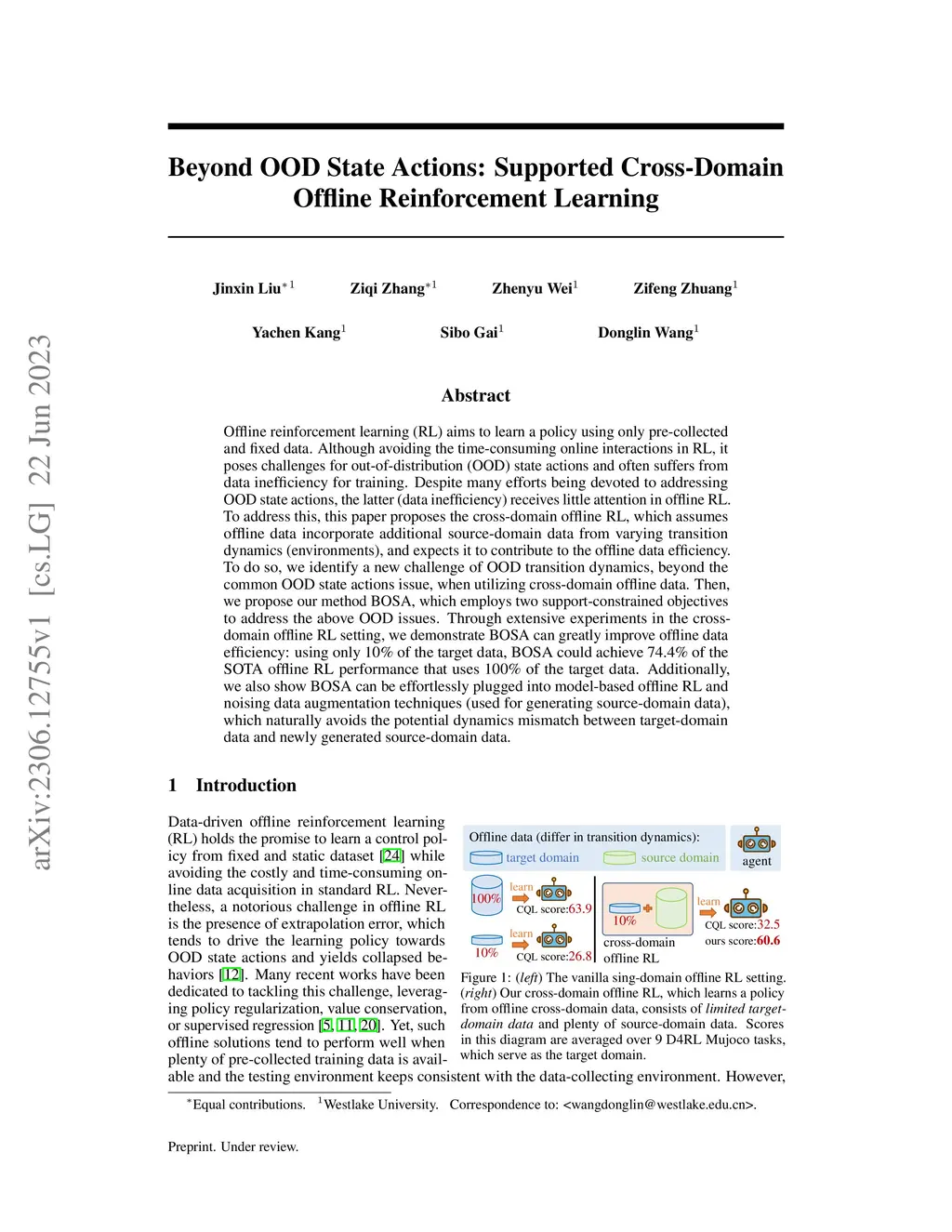Beyond OOD State Actions: Supported Cross-Domain Offline Reinforcement
