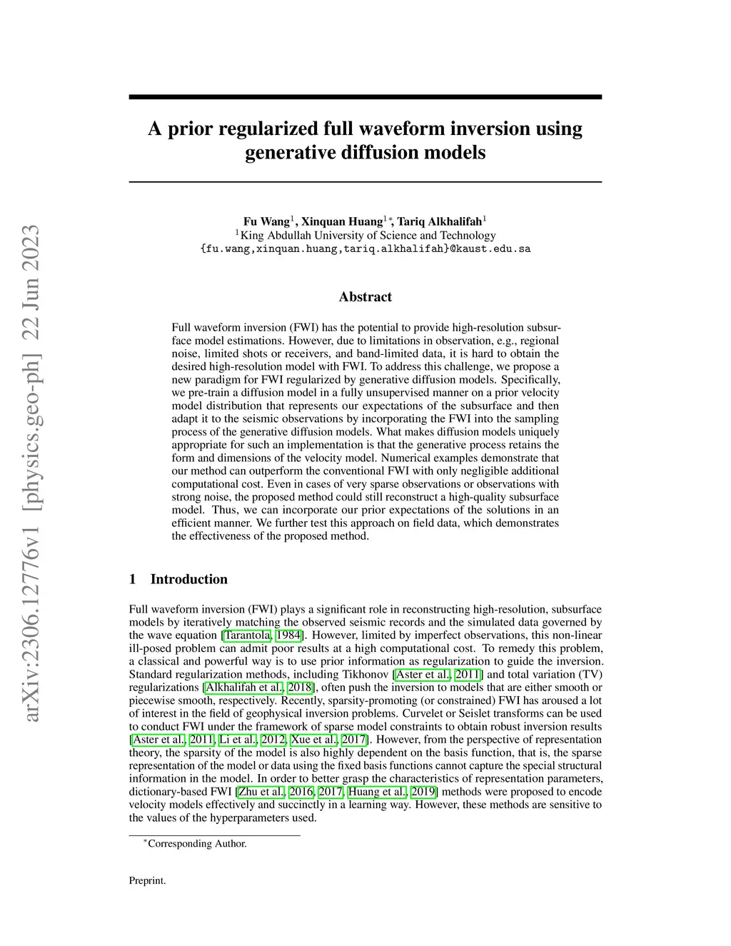 A prior regularized full waveform inversion using generative diffusion