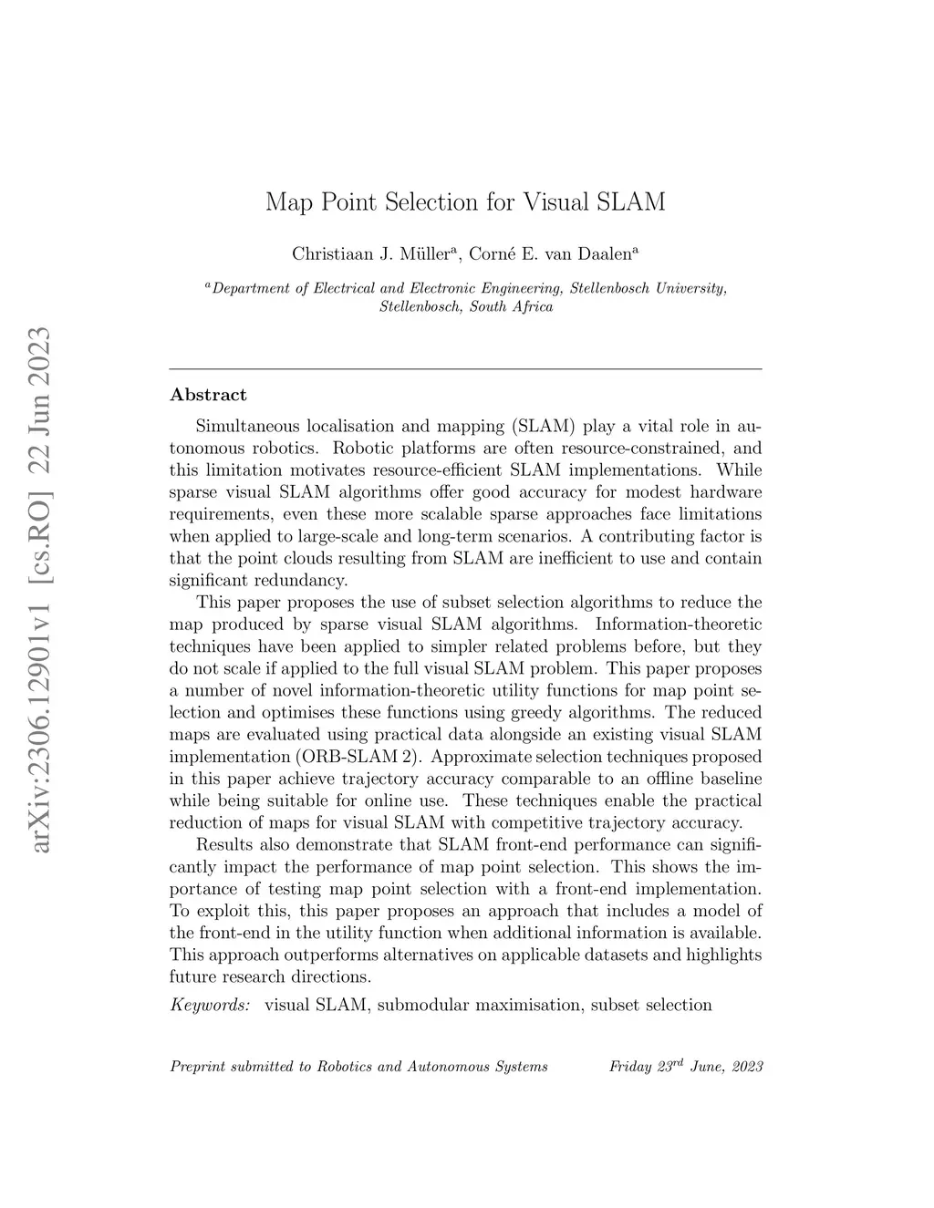 Map Point Selection for Visual SLAM