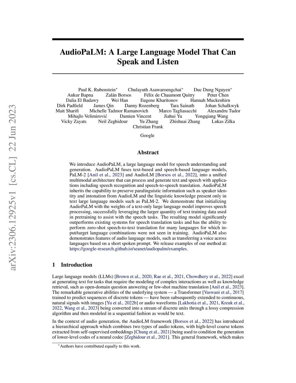 AudioPaLM: A Large Language Model That Can Speak and Listen