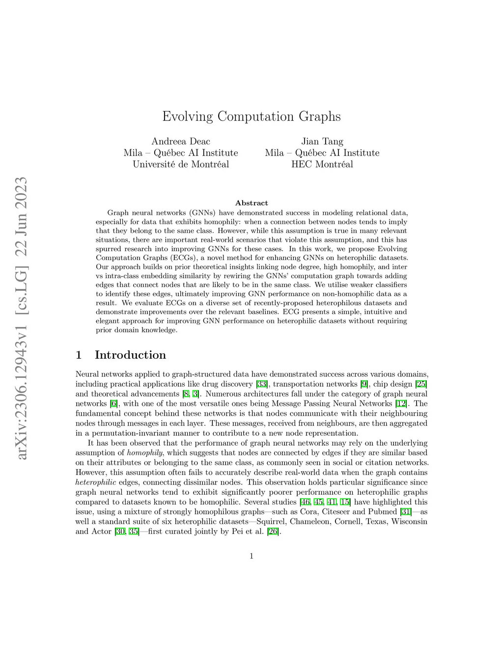 Graph neural networks (GNNs) have demonstrated success in modeling relational data, especially for data that exhibits homophily: when a connection between nodes tends to imply that they belong to the same class. However, while this assumption is true in many relevant situations, there are important real-world scenarios that violate this assumption, and this has spurred research into improving GNNs for these cases. In this work, we propose Evolving Computation Graphs (ECGs), a novel method for enhancing GNNs on heterophilic datasets. Our approach builds on prior theoretical insights linking node degree, high homophily, and inter vs intra-class embedding similarity by rewiring the GNNs' computation graph towards adding edges that connect nodes that are likely to be in the same class. We utilise weaker classifiers to identify these edges, ultimately improving GNN performance on non-homophilic data as a result. We evaluate ECGs on a diverse set of recently-proposed heterophilous datasets and demonstrate improvements over the relevant baselines. ECG presents a simple, intuitive and elegant approach for improving GNN performance on heterophilic datasets without requiring prior domain knowledge.