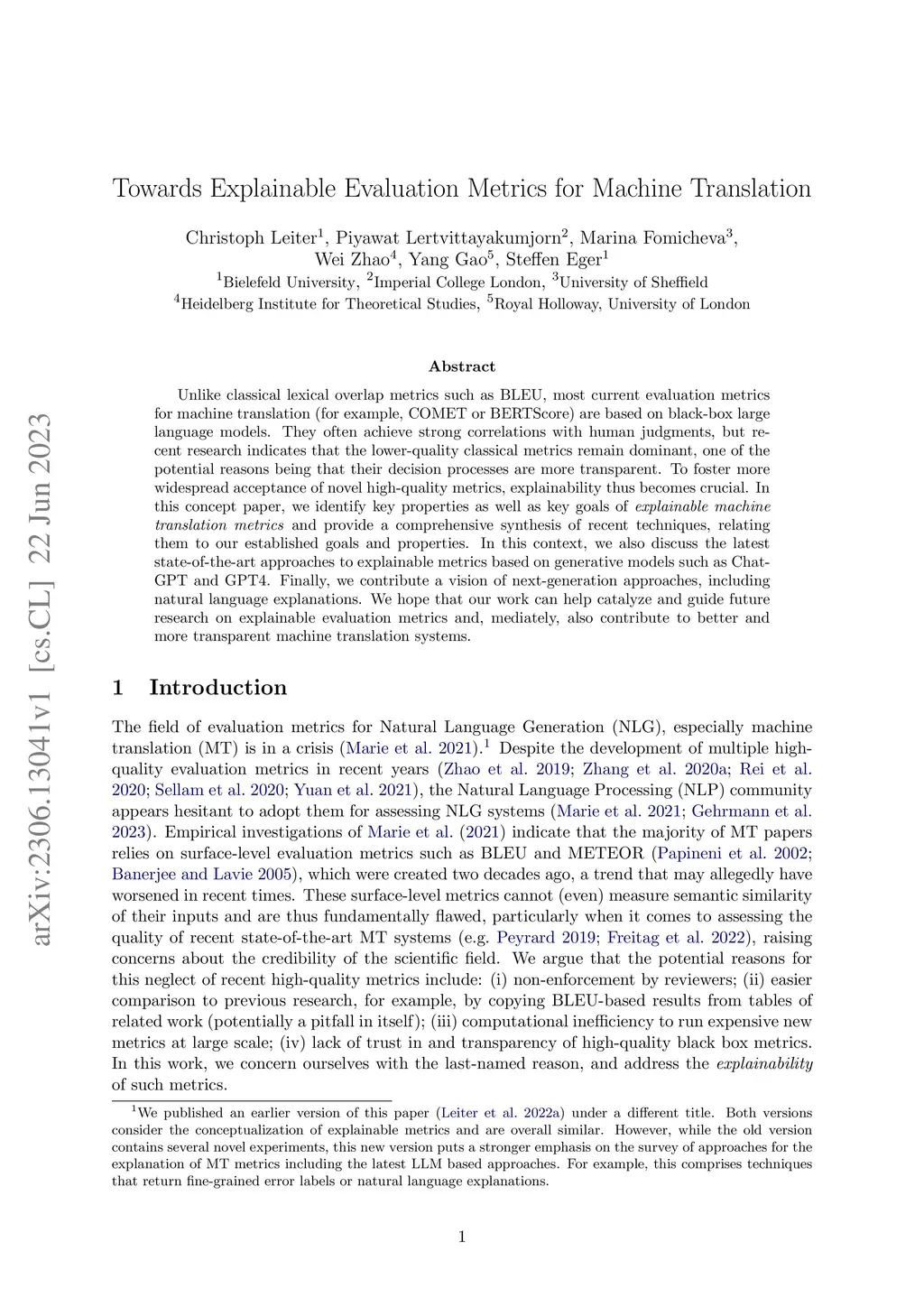 Unlike classical lexical overlap metrics such as BLEU, most current evaluation metrics for machine translation (for example, COMET or BERTScore) are based on black-box large language models. They often achieve strong correlations with human judgments, but recent research indicates that the lower-quality classical metrics remain dominant, one of the potential reasons being that their decision processes are more transparent. To foster more widespread acceptance of novel high-quality metrics, explainability thus becomes crucial. In this concept paper, we identify key properties as well as key goals of explainable machine translation metrics and provide a comprehensive synthesis of recent techniques, relating them to our established goals and properties. In this context, we also discuss the latest state-of-the-art approaches to explainable metrics based on generative models such as ChatGPT and GPT4. Finally, we contribute a vision of next-generation approaches, including natural language explanations. We hope that our work can help catalyze and guide future research on explainable evaluation metrics and, mediately, also contribute to better and more transparent machine translation systems.