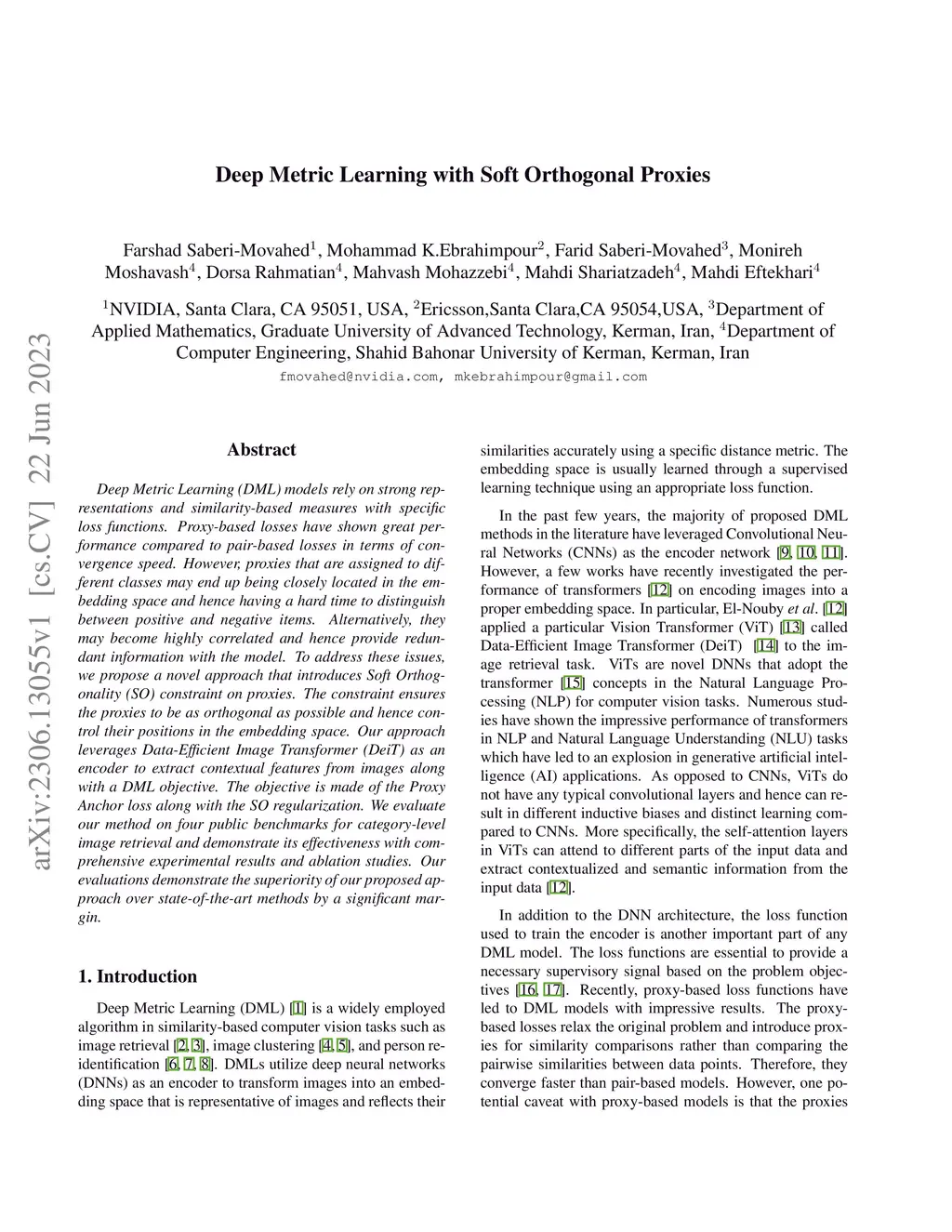 Deep Metric Learning (DML) models rely on strong representations and similarity-based measures with specific loss functions. Proxy-based losses have shown great performance compared to pair-based losses in terms of convergence speed. However, proxies that are assigned to different classes may end up being closely located in the embedding space and hence having a hard time to distinguish between positive and negative items. Alternatively, they may become highly correlated and hence provide redundant information with the model. To address these issues, we propose a novel approach that introduces Soft Orthogonality (SO) constraint on proxies. The constraint ensures the proxies to be as orthogonal as possible and hence control their positions in the embedding space. Our approach leverages Data-Efficient Image Transformer (DeiT) as an encoder to extract contextual features from images along with a DML objective. The objective is made of the Proxy Anchor loss along with the SO regularization. We evaluate our method on four public benchmarks for category-level image retrieval and demonstrate its effectiveness with comprehensive experimental results and ablation studies. Our evaluations demonstrate the superiority of our proposed approach over state-of-the-art methods by a significant margin.