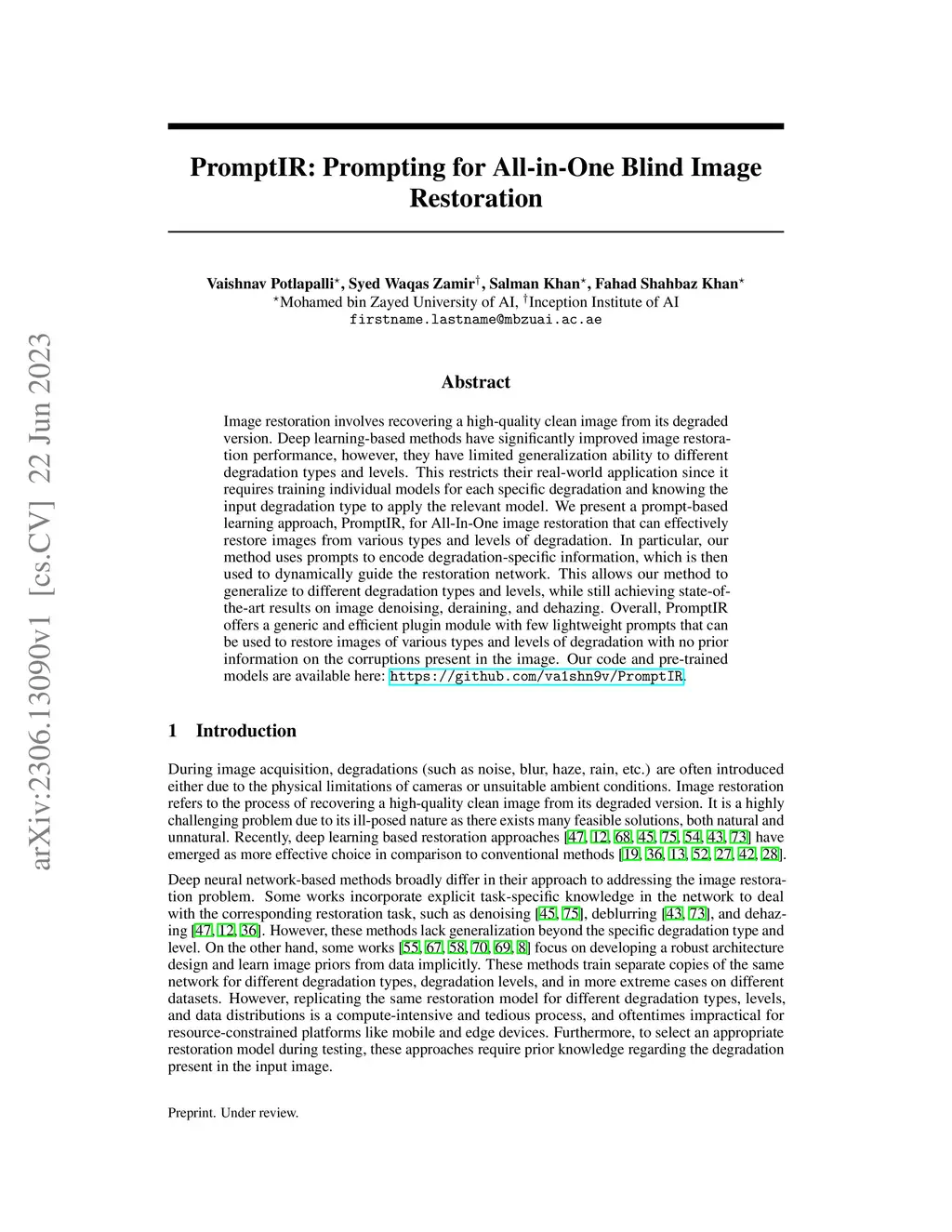 PromptIR: Prompting for All-in-One Blind Image Restoration