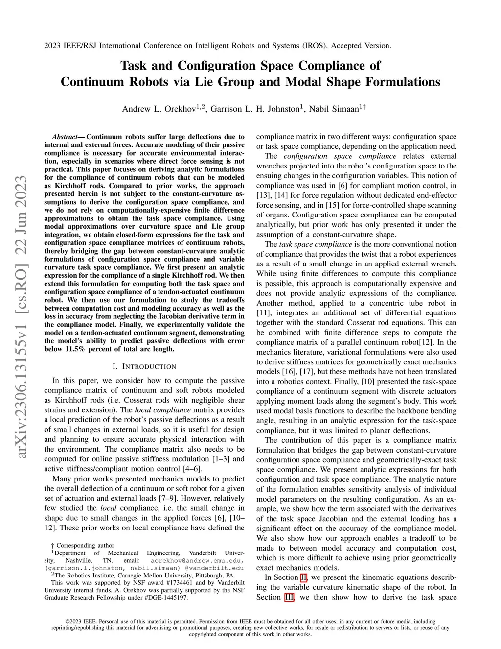 Task and Configuration Space Compliance of Continuum Robots via Lie