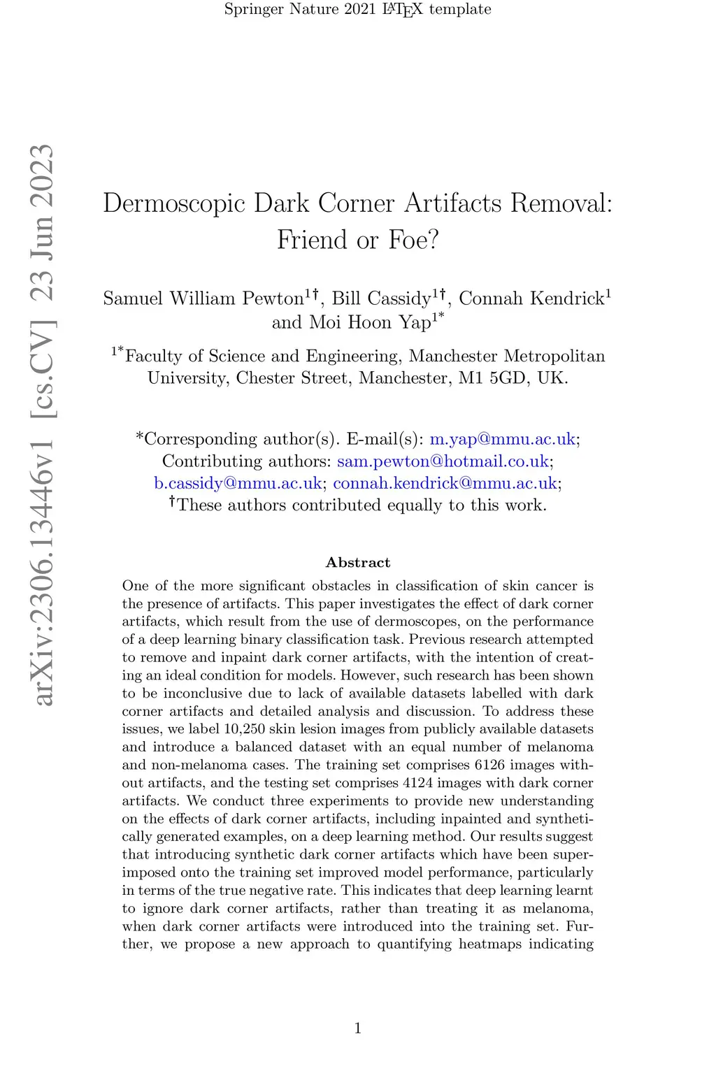 Dermoscopic Dark Corner Artifacts Removal: Friend or Foe?