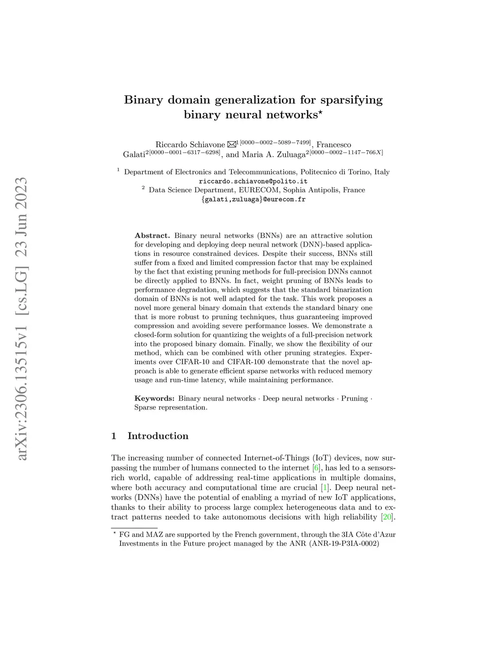 Binary domain generalization for sparsifying binary neural networks