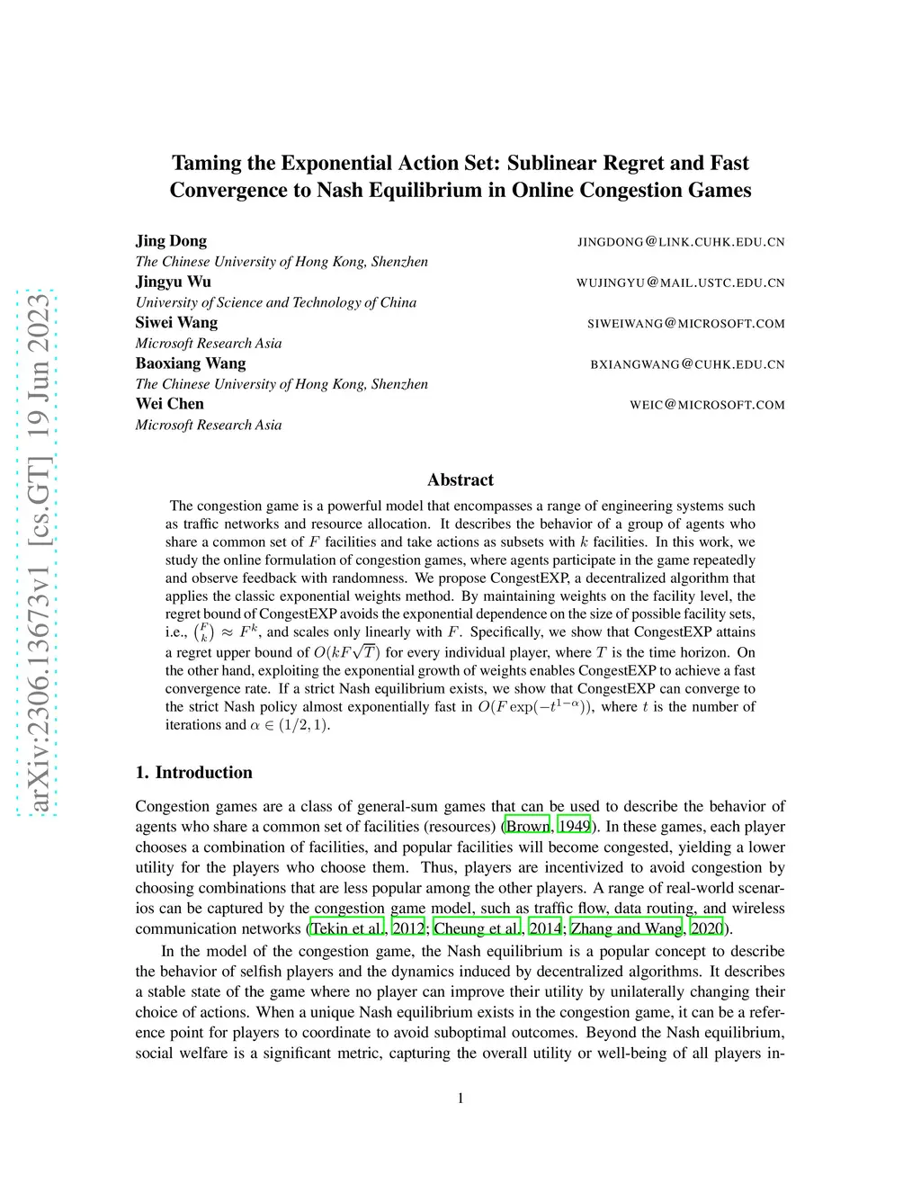 Taming the Exponential Action Set: Sublinear Regret and Fast Convergence