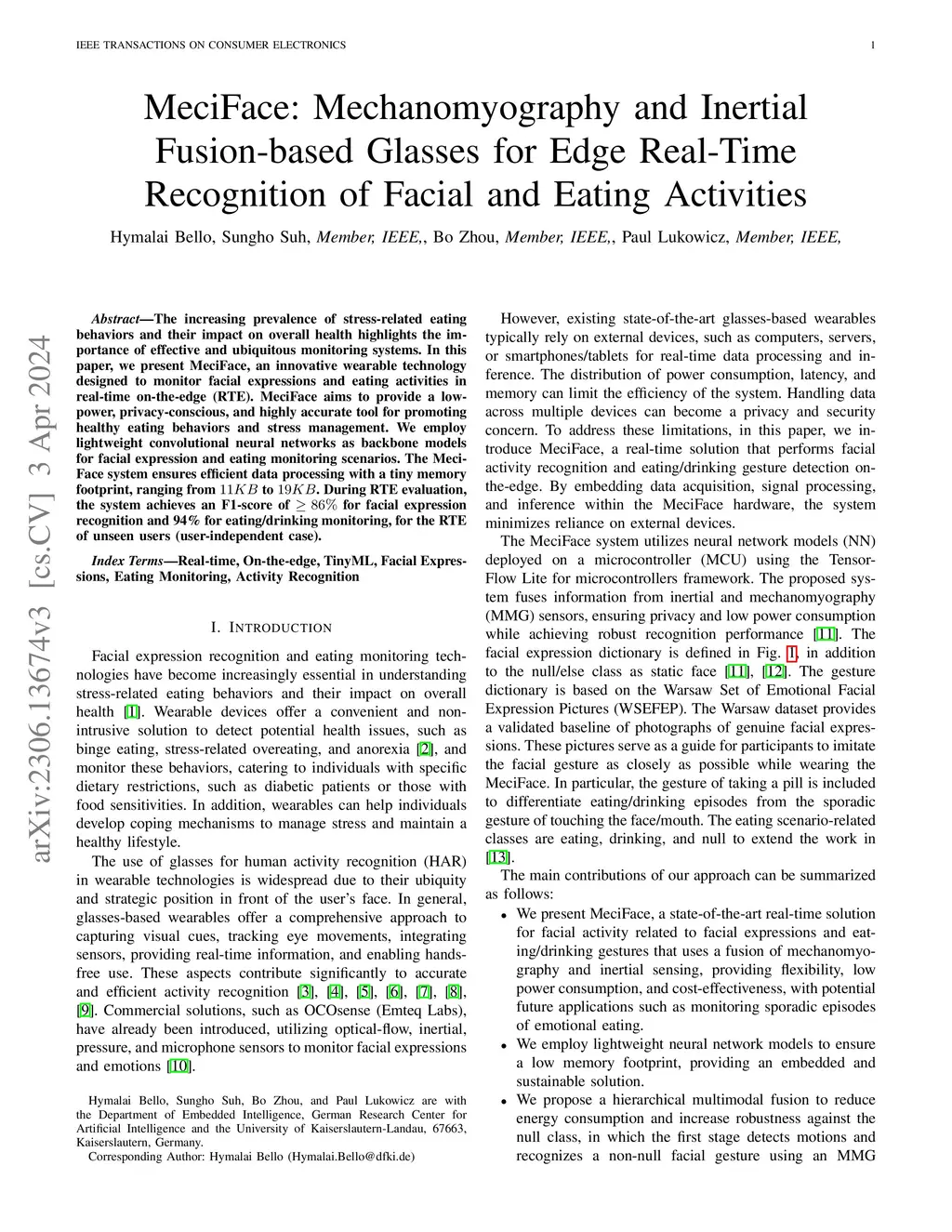 MeciFace: Mechanomyography and Inertial Fusion-based Glasses for Edge