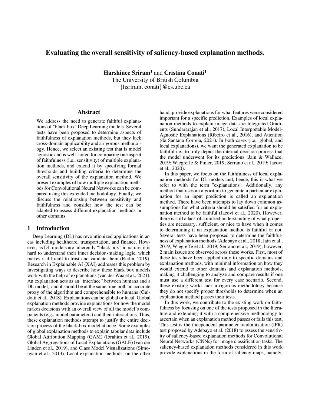 We address the need to generate faithful explanations of "black box" Deep Learning models. Several tests have been proposed to determine aspects of faithfulness of explanation methods, but they lack cross-domain applicability and a rigorous methodology. Hence, we select an existing test that is model agnostic and is well-suited for comparing one aspect of faithfulness (i.e., sensitivity) of multiple explanation methods, and extend it by specifying formal thresh-olds and building criteria to determine the over-all sensitivity of the explanation method. We present examples of how multiple explanation methods for Convolutional Neural Networks can be compared using this extended methodology. Finally, we discuss the relationship between sensitivity and faithfulness and consider how the test can be adapted to assess different explanation methods in other domains.