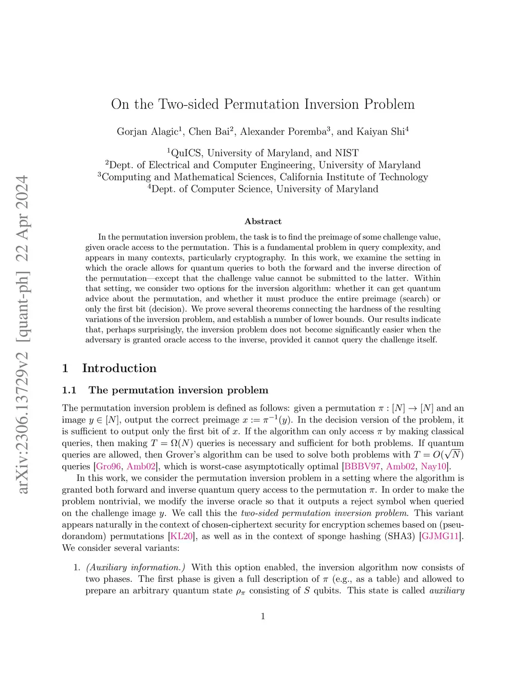 In the permutation inversion problem, the task is to find the preimage of some challenge value, given oracle access to the permutation. This is a fundamental problem in query complexity, and appears in many contexts, particularly cryptography. In this work, we examine the setting in which the oracle allows for quantum queries to both the forward and the inverse direction of the permutation -- except that the challenge value cannot be submitted to the latter. Within that setting, we consider two options for the inversion algorithm: whether it can get quantum advice about the permutation, and whether it must produce the entire preimage (search) or only the first bit (decision). We prove several theorems connecting the hardness of the resulting variations of the inversion problem, and establish a number of lower bounds. Our results indicate that, perhaps surprisingly, the inversion problem does not become significantly easier when the adversary is granted oracle access to the inverse, provided it cannot query the challenge itself.