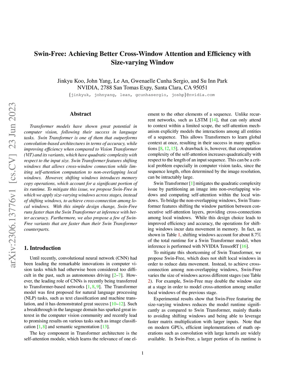Swin-Free: Achieving Better Cross-Window Attention and Efficiency with