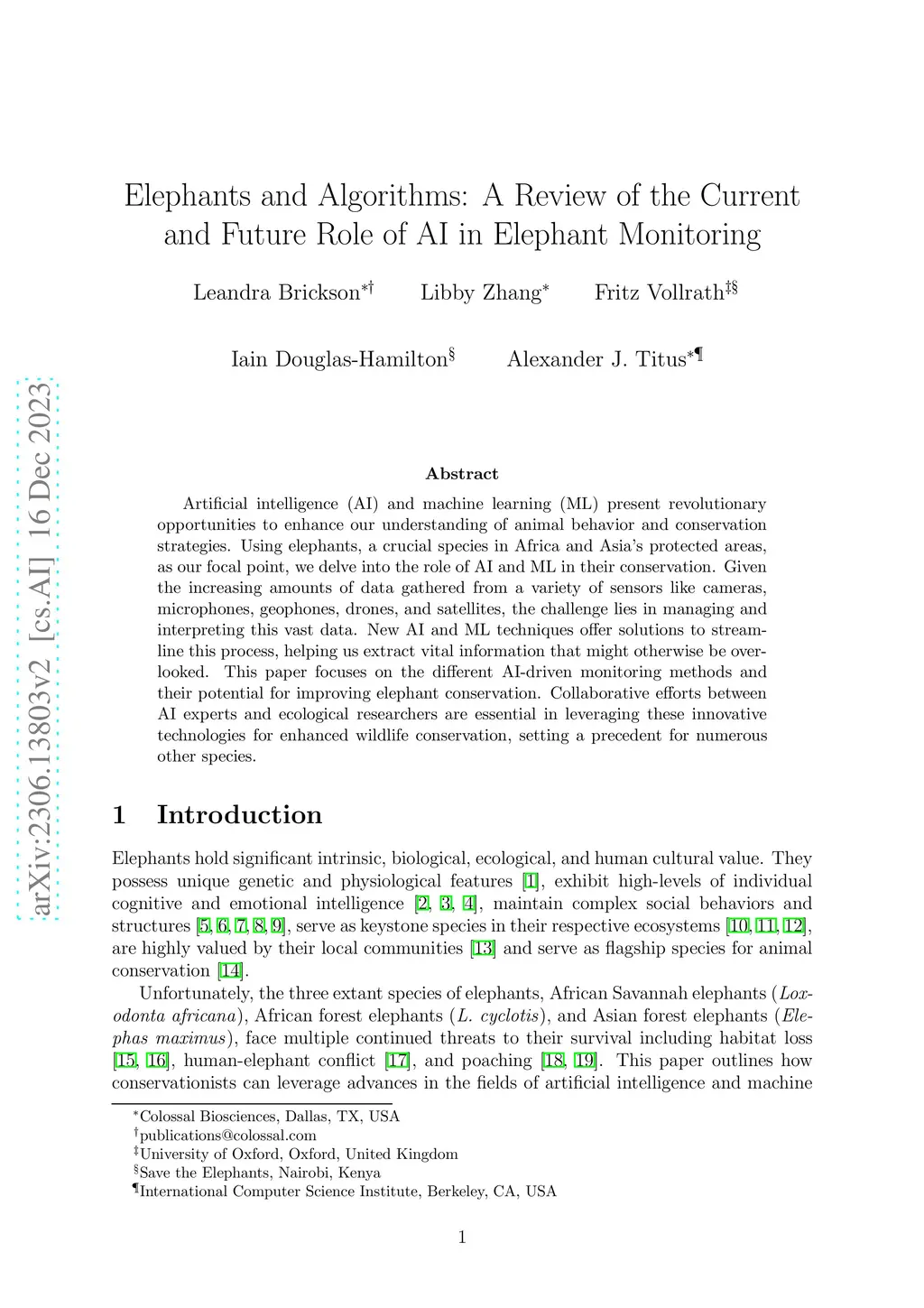 Elephants and Algorithms: A Review of the Current and Future Role of AI