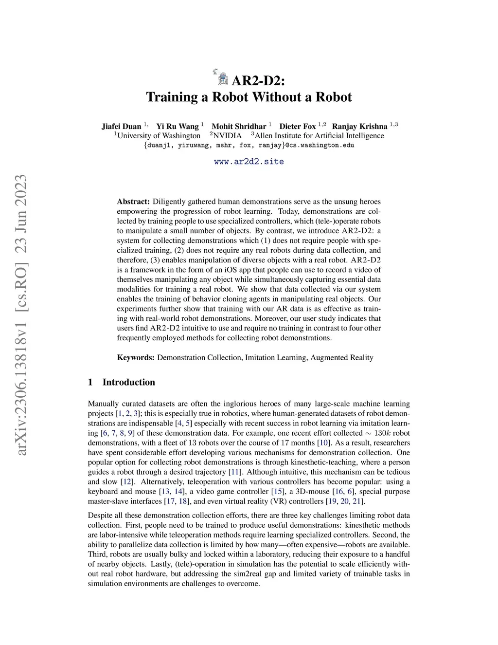 AR2-D2:Training a Robot Without a Robot