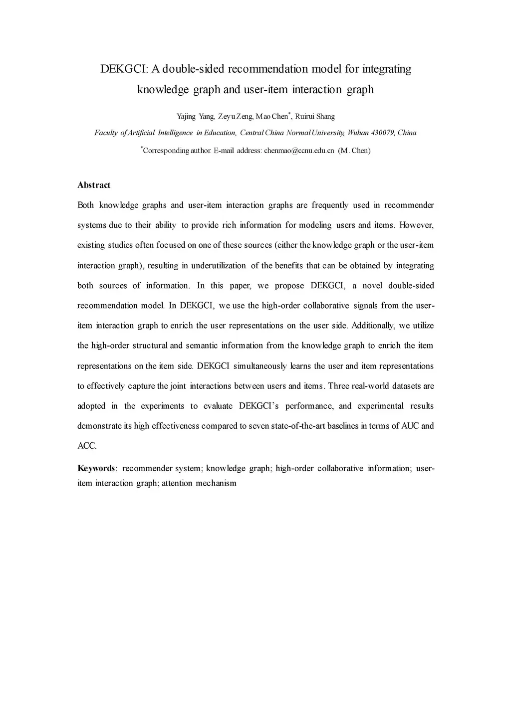 DEKGCI: A double-sided recommendation model for integrating knowledge
