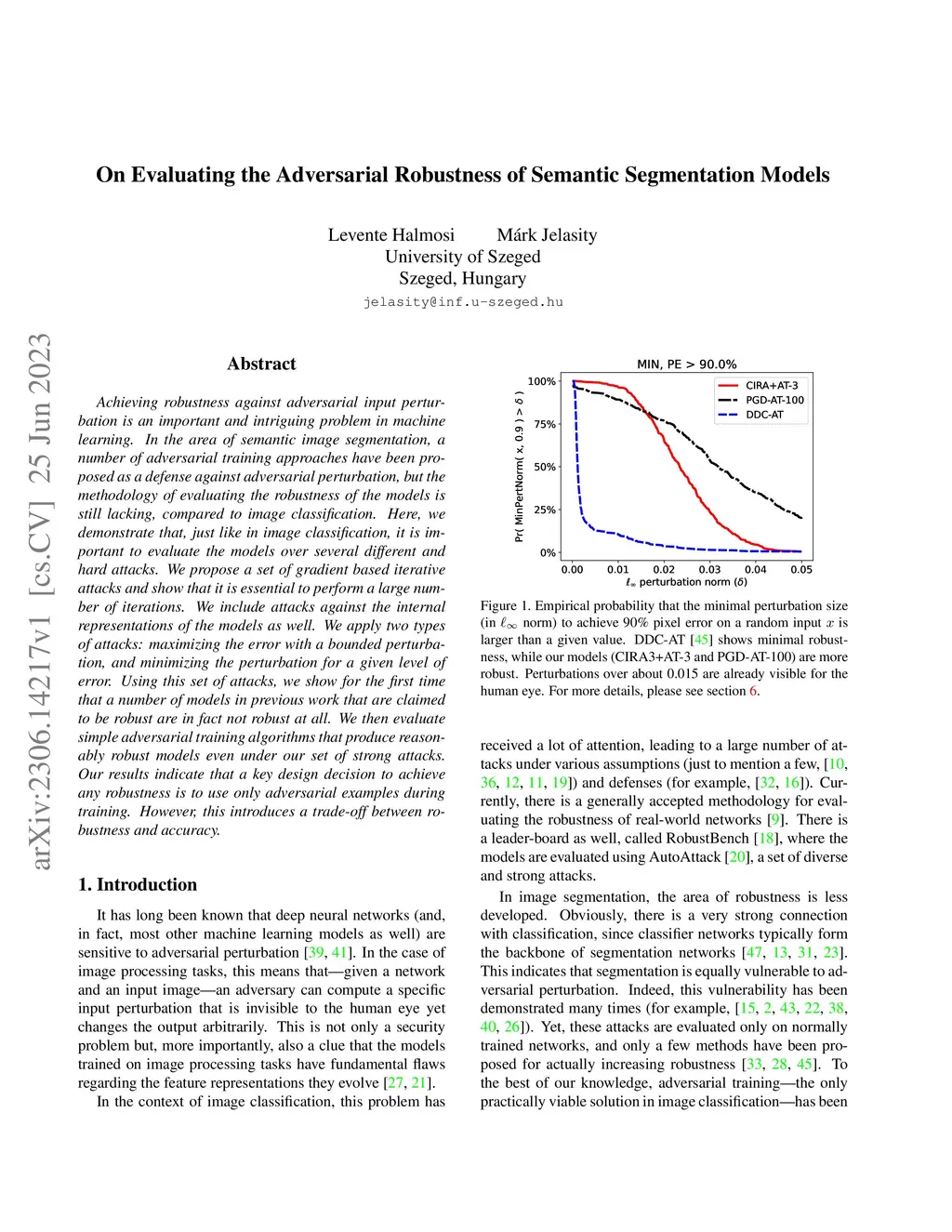 Achieving robustness against adversarial input perturbation is an important and intriguing problem in machine learning. In the area of semantic image segmentation, a number of adversarial training approaches have been proposed as a defense against adversarial perturbation, but the methodology of evaluating the robustness of the models is still lacking, compared to image classification. Here, we demonstrate that, just like in image classification, it is important to evaluate the models over several different and hard attacks. We propose a set of gradient based iterative attacks and show that it is essential to perform a large number of iterations. We include attacks against the internal representations of the models as well. We apply two types of attacks: maximizing the error with a bounded perturbation, and minimizing the perturbation for a given level of error. Using this set of attacks, we show for the first time that a number of models in previous work that are claimed to be robust are in fact not robust at all. We then evaluate simple adversarial training algorithms that produce reasonably robust models even under our set of strong attacks. Our results indicate that a key design decision to achieve any robustness is to use only adversarial examples during training. However, this introduces a trade-off between robustness and accuracy.