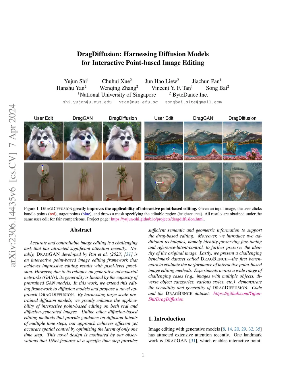 DragDiffusion: Harnessing Diffusion Models for Interactive Point-based