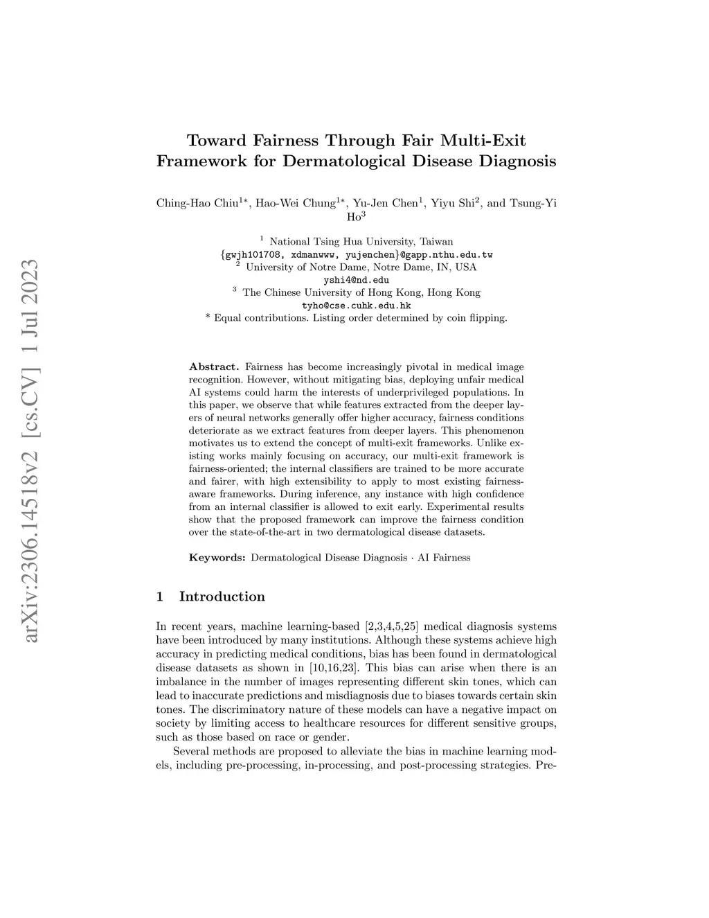 Toward Fairness Through Fair Multi-Exit Framework for Dermatological
