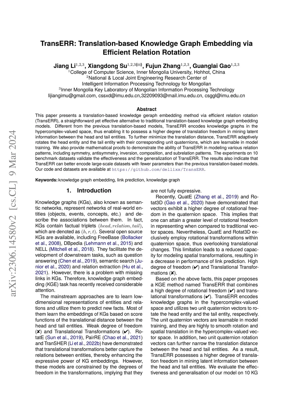 TransERR: Translation-based Knowledge Graph Embedding via Efficient