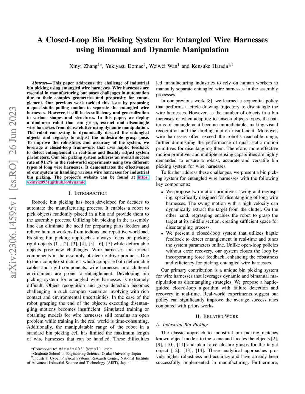 A Closed-Loop Bin Picking System for Entangled Wire Harnesses using