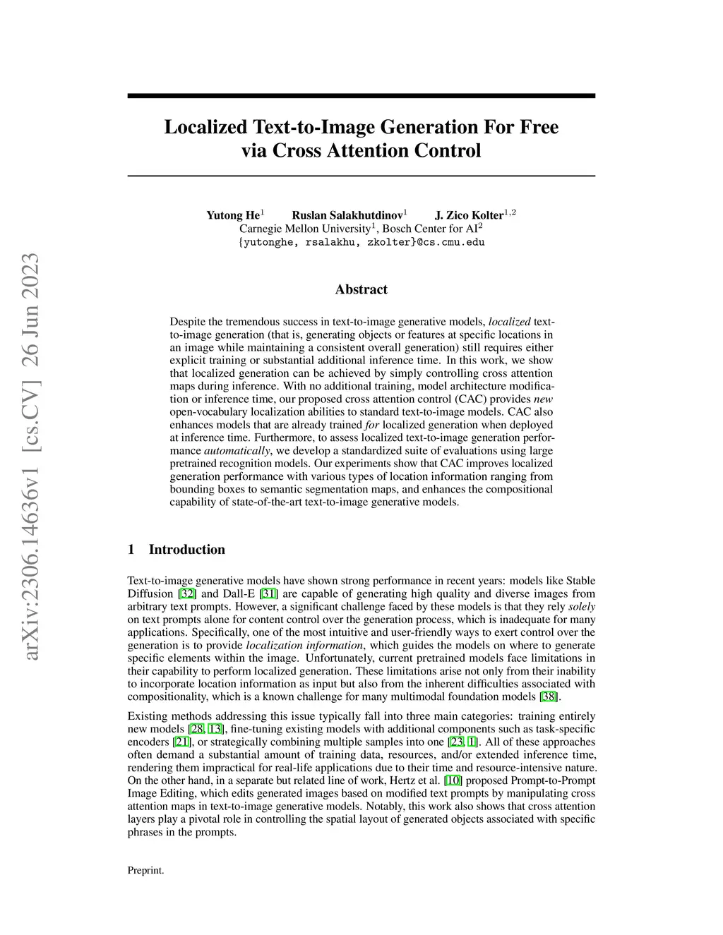 Localized Text-to-Image Generation for Free via Cross Attention Control