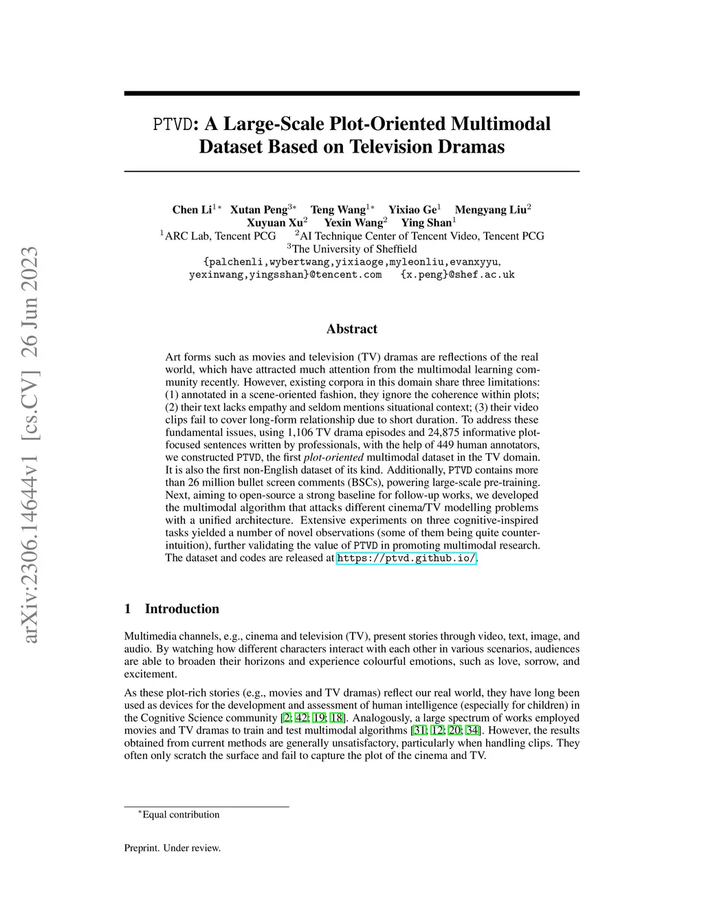 PTVD: A Large-Scale Plot-Oriented Multimodal Dataset Based on Television