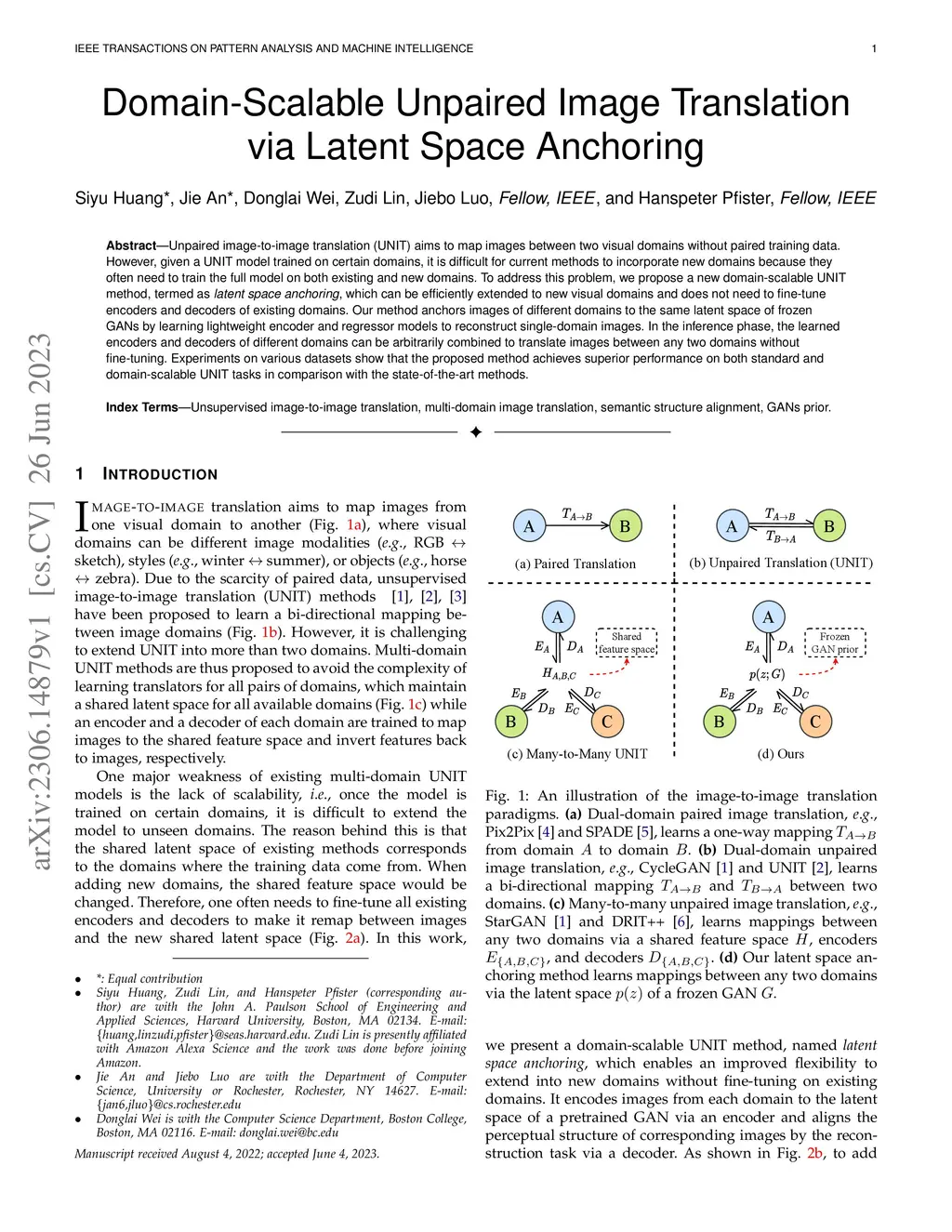 Domain-Scalable Unpaired Image Translation via Latent Space Anchoring