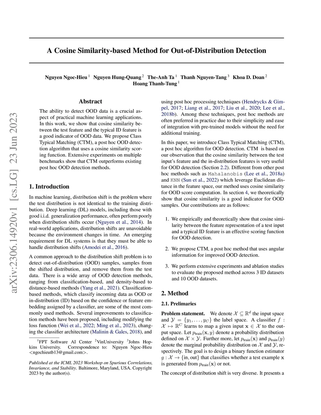A Cosine Similarity-based Method for Out-of-Distribution Detection