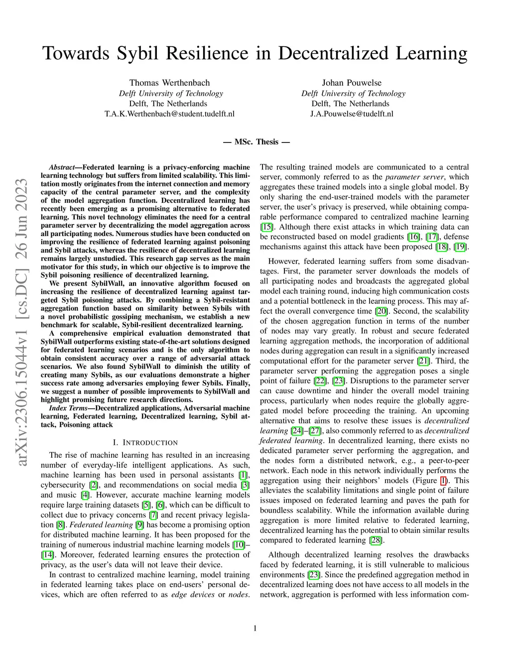 Towards Sybil Resilience in Decentralized Learning