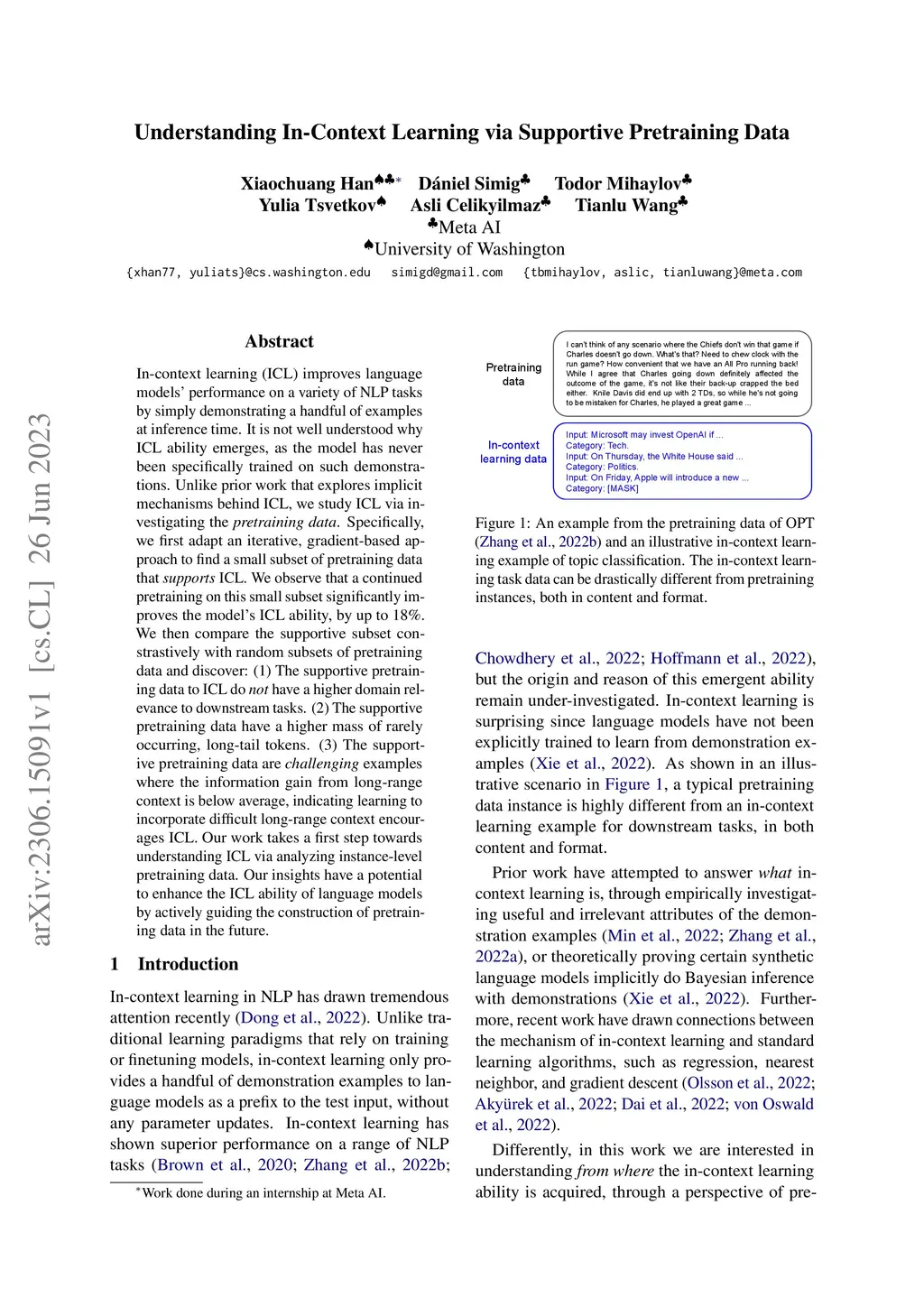 Understanding In-Context Learning via Supportive Pretraining Data