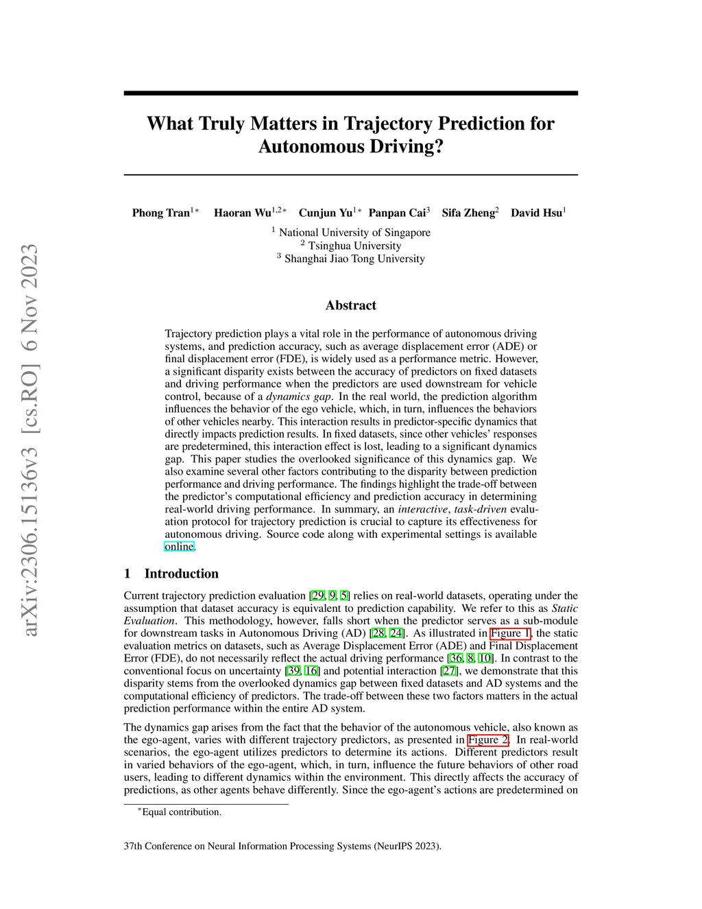 Trajectory prediction plays a vital role in the performance of autonomous driving systems, and prediction accuracy, such as average displacement error (ADE) or final displacement error (FDE), is widely used as a performance metric. However, a significant disparity exists between the accuracy of predictors on fixed datasets and driving performance when the predictors are used downstream for vehicle control, because of a dynamics gap. In the real world, the prediction algorithm influences the behavior of the ego vehicle, which, in turn, influences the behaviors of other vehicles nearby. This interaction results in predictor-specific dynamics that directly impacts prediction results. In fixed datasets, since other vehicles' responses are predetermined, this interaction effect is lost, leading to a significant dynamics gap. This paper studies the overlooked significance of this dynamics gap. We also examine several other factors contributing to the disparity between prediction performance and driving performance. The findings highlight the trade-off between the predictor's computational efficiency and prediction accuracy in determining real-world driving performance. In summary, an interactive, task-driven evaluation protocol for trajectory prediction is crucial to capture its effectiveness for autonomous driving. Source code along with experimental settings is available online.