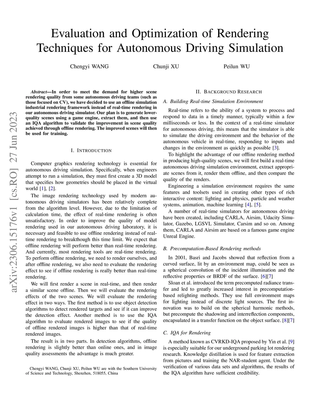 In order to meet the demand for higher scene rendering quality from some autonomous driving teams (such as those focused on CV), we have decided to use an offline simulation industrial rendering framework instead of real-time rendering in our autonomous driving simulator. Our plan is to generate lower-quality scenes using a game engine, extract them, and then use an IQA algorithm to validate the improvement in scene quality achieved through offline rendering. The improved scenes will then be used for training.
