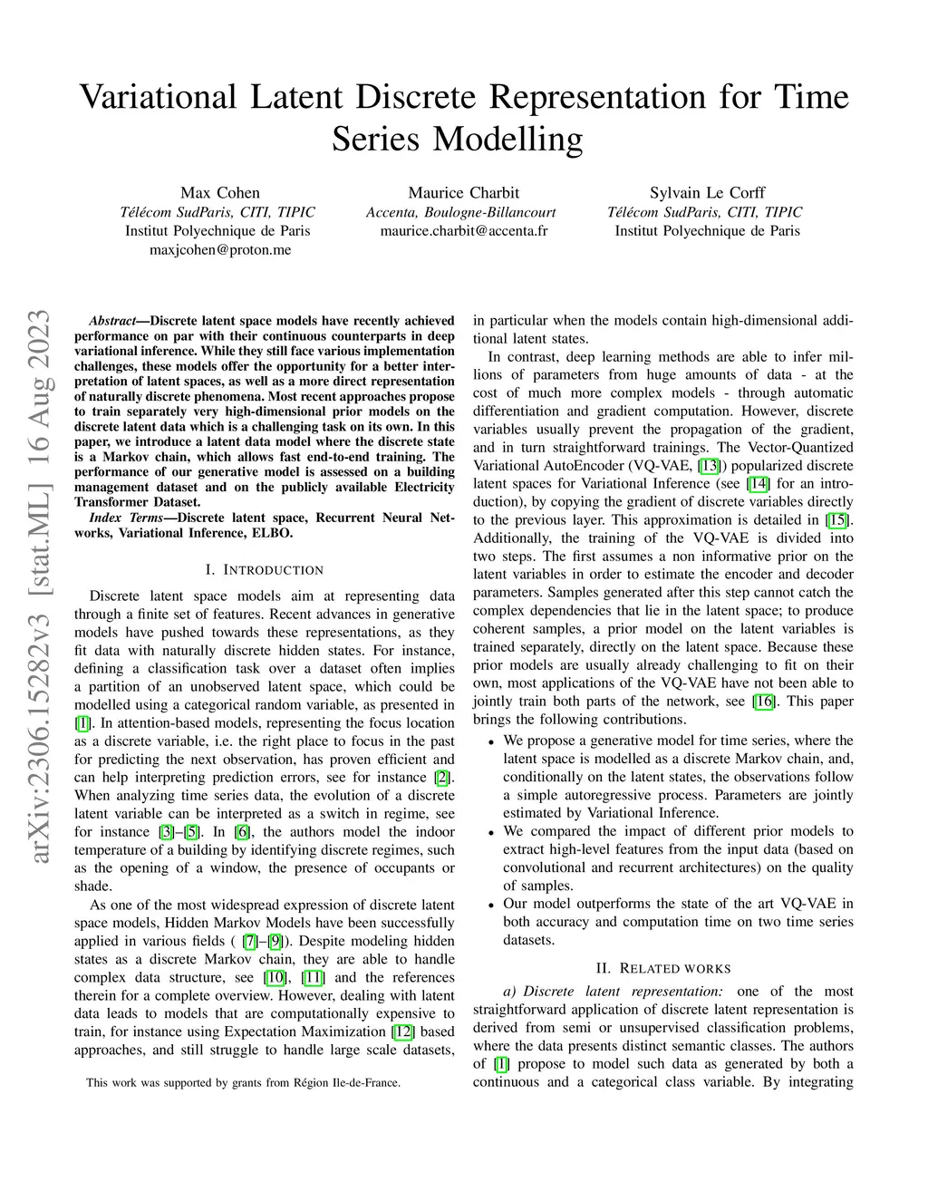 Variational latent discrete representation for time series modelling