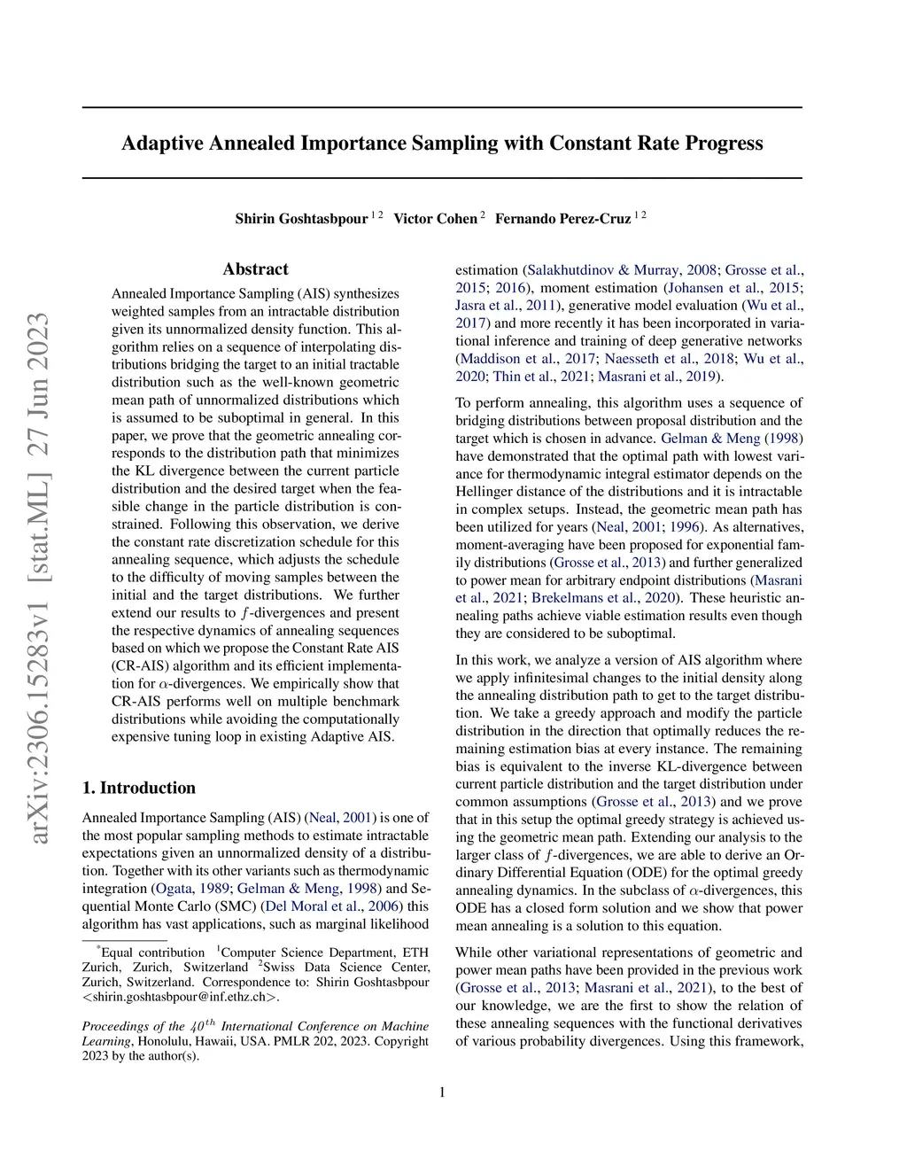 Annealed Importance Sampling (AIS) synthesizes weighted samples from an intractable distribution given its unnormalized density function. This algorithm relies on a sequence of interpolating distributions bridging the target to an initial tractable distribution such as the well-known geometric mean path of unnormalized distributions which is assumed to be suboptimal in general. In this paper, we prove that the geometric annealing corresponds to the distribution path that minimizes the KL divergence between the current particle distribution and the desired target when the feasible change in the particle distribution is constrained. Following this observation, we derive the constant rate discretization schedule for this annealing sequence, which adjusts the schedule to the difficulty of moving samples between the initial and the target distributions. We further extend our results to -divergences and present the respective dynamics of annealing sequences based on which we propose the Constant Rate AIS (CR-AIS) algorithm and its efficient implementation for -divergences. We empirically show that CR-AIS performs well on multiple benchmark distributions while avoiding the computationally expensive tuning loop in existing Adaptive AIS.