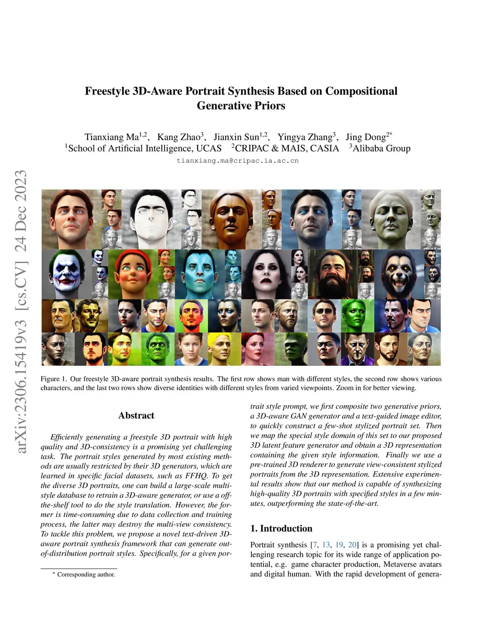 Freestyle 3D-Aware Portrait Synthesis Based on Compositional Generative