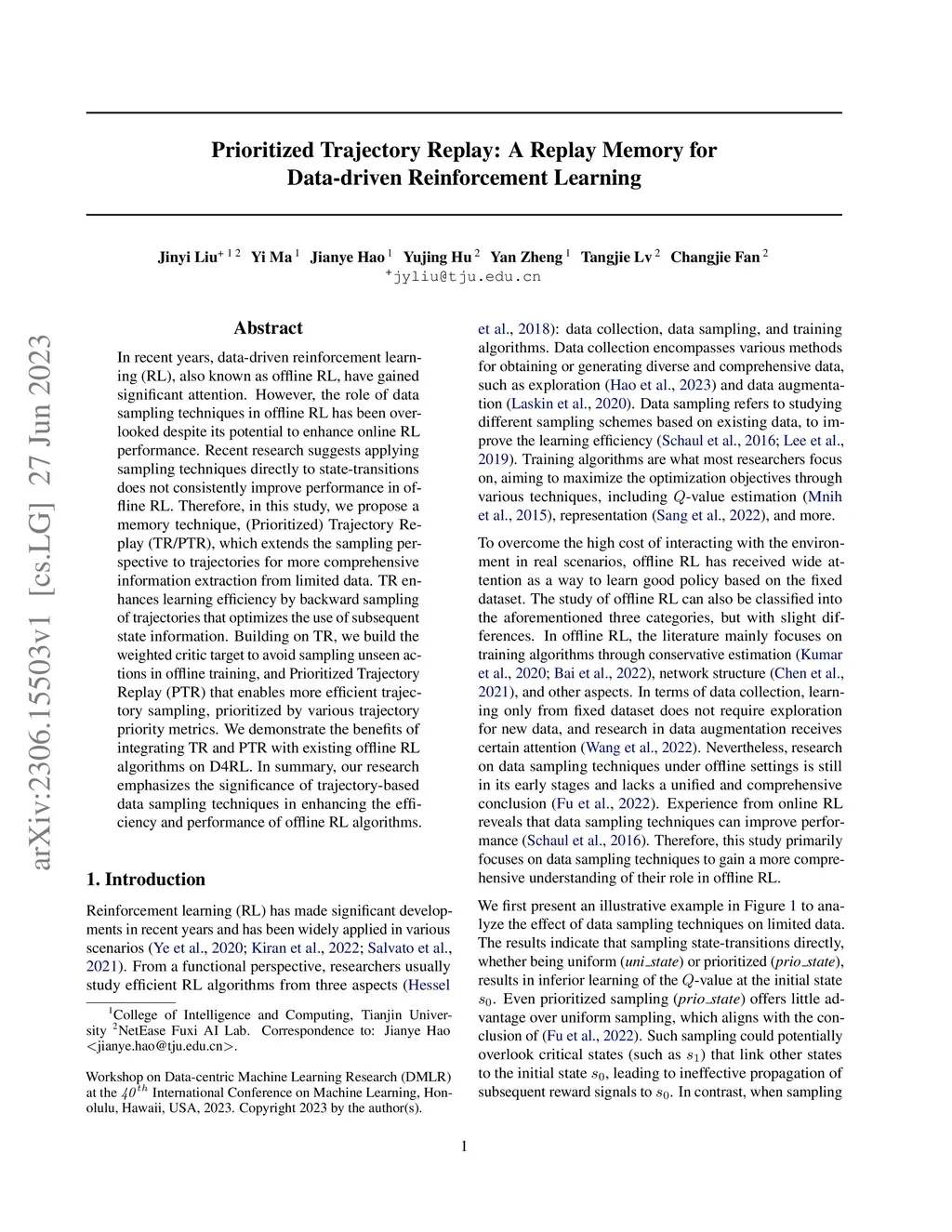 Prioritized Trajectory Replay: A Replay Memory for Data-driven Reinforcement Learning