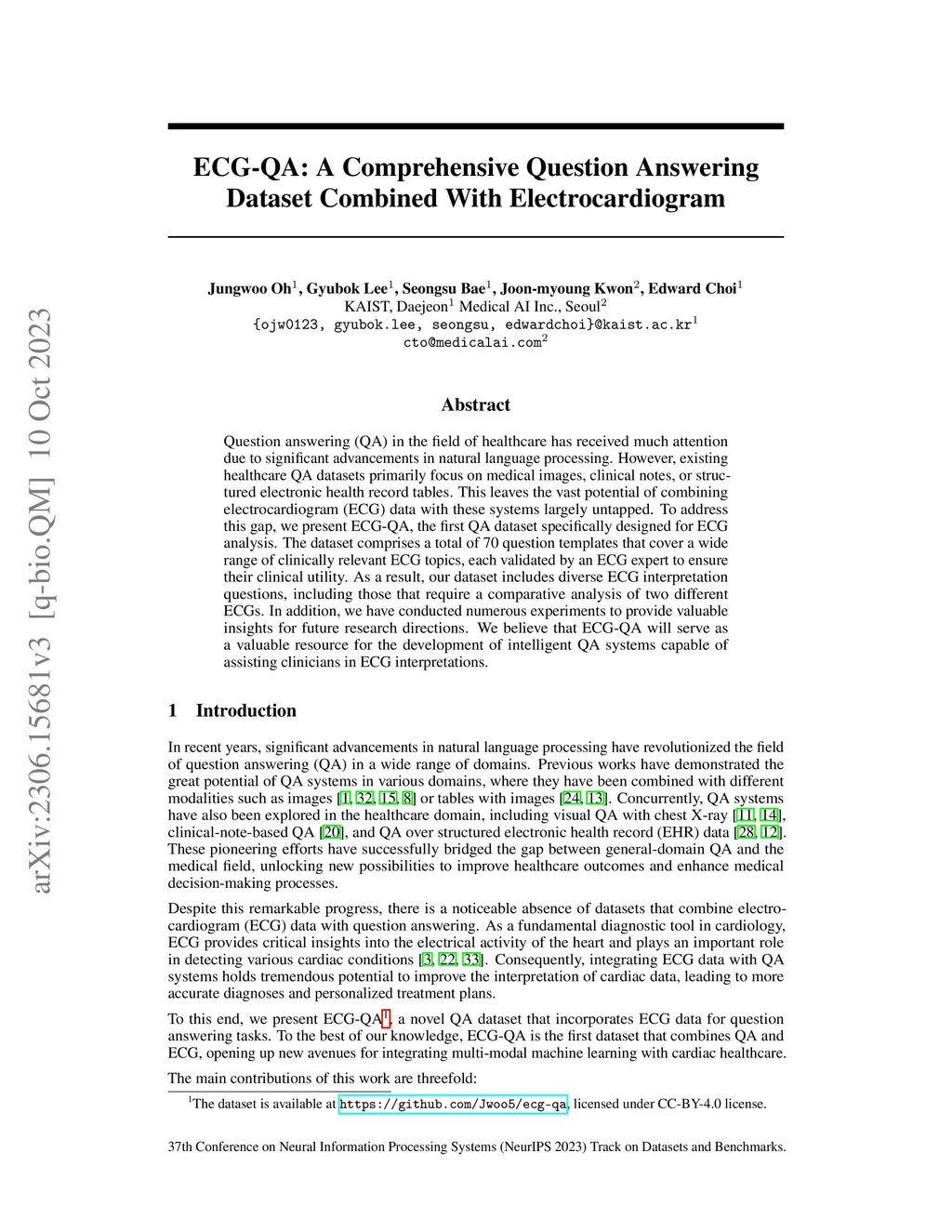 ECG-QA: A Comprehensive Question Answering Dataset Combined With