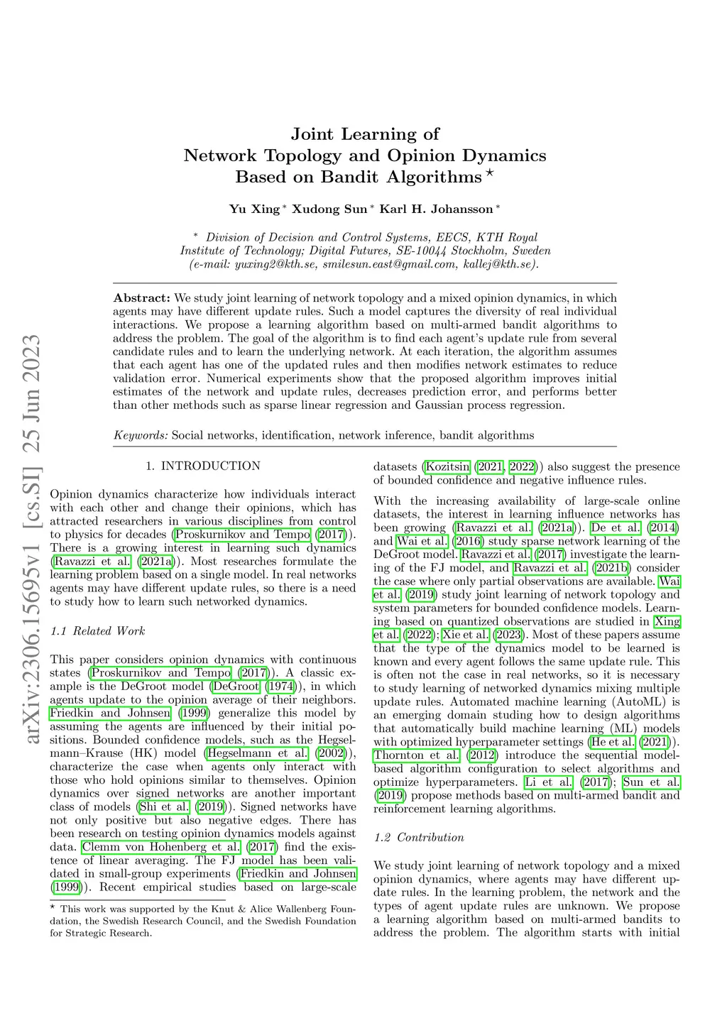 Joint Learning of Network Topology and Opinion Dynamics Based on Bandit