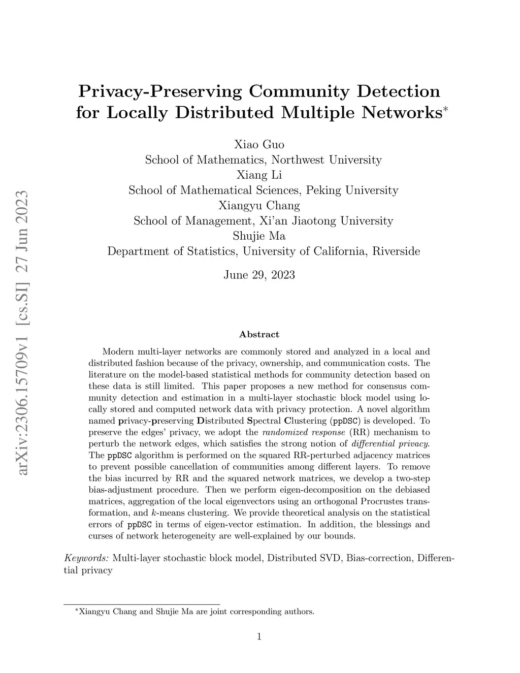 Privacy-Preserving Community Detection for Locally Distributed Multiple