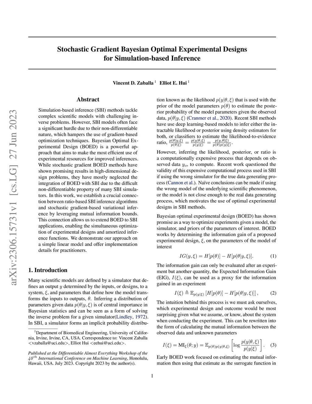 Simulation-based inference (SBI) methods tackle complex scientific models with challenging inverse problems. However, SBI models often face a significant hurdle due to their non-differentiable nature, which hampers the use of gradient-based optimization techniques. Bayesian Optimal Experimental Design (BOED) is a powerful approach that aims to make the most efficient use of experimental resources for improved inferences. While stochastic gradient BOED methods have shown promising results in high-dimensional design problems, they have mostly neglected the integration of BOED with SBI due to the difficult non-differentiable property of many SBI simulators. In this work, we establish a crucial connection between ratio-based SBI inference algorithms and stochastic gradient-based variational inference by leveraging mutual information bounds. This connection allows us to extend BOED to SBI applications, enabling the simultaneous optimization of experimental designs and amortized inference functions. We demonstrate our approach on a simple linear model and offer implementation details for practitioners.
