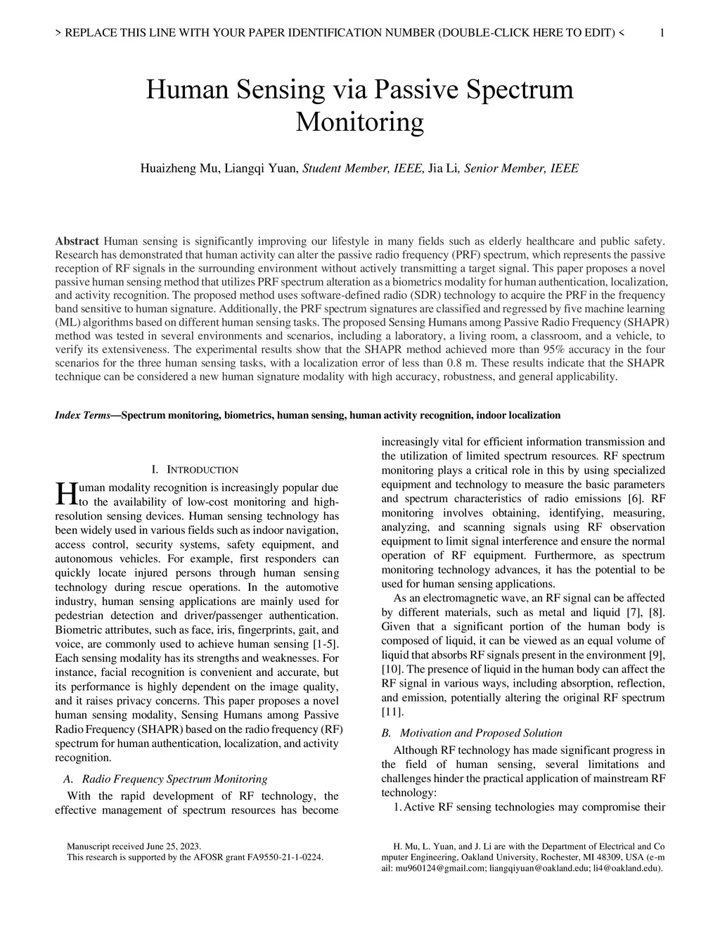 Human sensing is significantly improving our lifestyle in many fields such as elderly healthcare and public safety. Research has demonstrated that human activity can alter the passive radio frequency (PRF) spectrum, which represents the passive reception of RF signals in the surrounding environment without actively transmitting a target signal. This paper proposes a novel passive human sensing method that utilizes PRF spectrum alteration as a biometrics modality for human authentication, localization, and activity recognition. The proposed method uses software-defined radio (SDR) technology to acquire the PRF in the frequency band sensitive to human signature. Additionally, the PRF spectrum signatures are classified and regressed by five machine learning (ML) algorithms based on different human sensing tasks. The proposed Sensing Humans among Passive Radio Frequency (SHAPR) method was tested in several environments and scenarios, including a laboratory, a living room, a classroom, and a vehicle, to verify its extensiveness. The experimental results show that the SHAPR method achieved more than 95% accuracy in the four scenarios for the three human sensing tasks, with a localization error of less than 0.8 m. These results indicate that the SHAPR technique can be considered a new human signature modality with high accuracy, robustness, and general applicability.