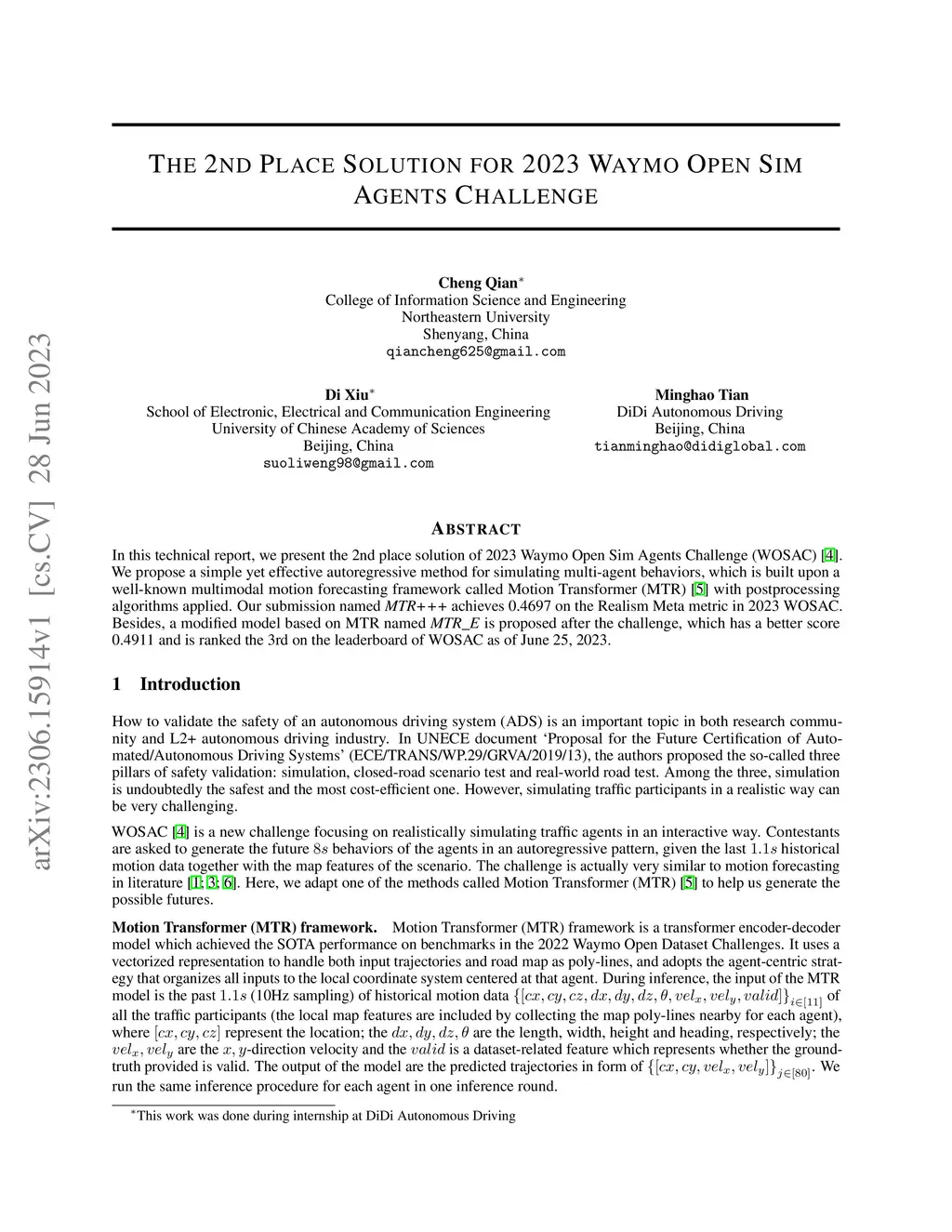 In this technical report, we present the 2nd place solution of 2023 Waymo Open Sim Agents Challenge (WOSAC)[4]. We propose a simple yet effective autoregressive method for simulating multi-agent behaviors, which is built upon a well-known multimodal motion forecasting framework called Motion Transformer (MTR)[5] with postprocessing algorithms applied. Our submission named MTR+++ achieves 0.4697 on the Realism Meta metric in 2023 WOSAC. Besides, a modified model based on MTR named MTR_E is proposed after the challenge, which has a better score 0.4911 and is ranked the 3rd on the leaderboard of WOSAC as of June 25, 2023.