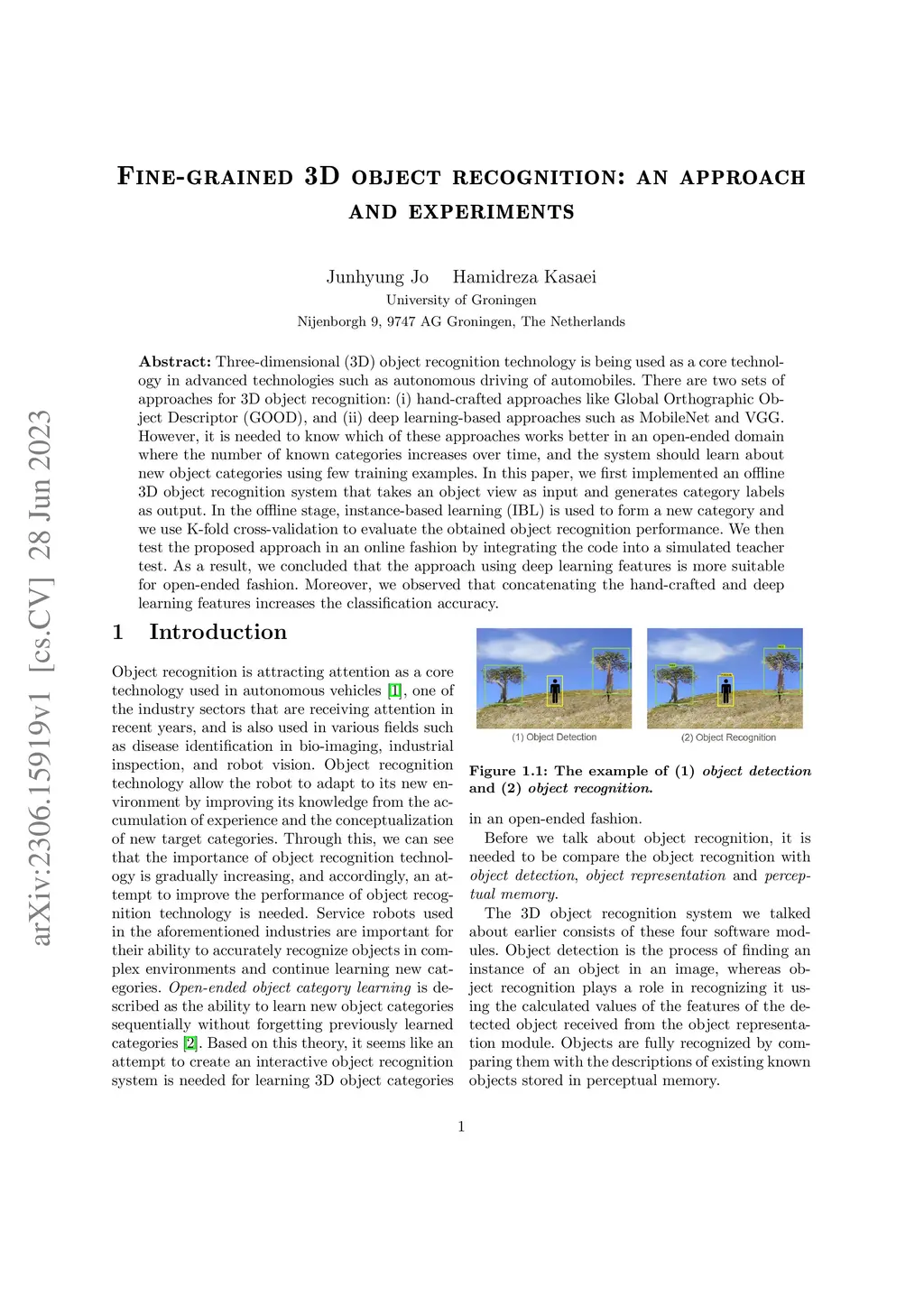 Three-dimensional (3D) object recognition technology is being used as a core technology in advanced technologies such as autonomous driving of automobiles. There are two sets of approaches for 3D object recognition: (i) hand-crafted approaches like Global Orthographic Object Descriptor (GOOD), and (ii) deep learning-based approaches such as MobileNet and VGG. However, it is needed to know which of these approaches works better in an open-ended domain where the number of known categories increases over time, and the system should learn about new object categories using few training examples. In this paper, we first implemented an offline 3D object recognition system that takes an object view as input and generates category labels as output. In the offline stage, instance-based learning (IBL) is used to form a new category and we use K-fold cross-validation to evaluate the obtained object recognition performance. We then test the proposed approach in an online fashion by integrating the code into a simulated teacher test. As a result, we concluded that the approach using deep learning features is more suitable for open-ended fashion. Moreover, we observed that concatenating the hand-crafted and deep learning features increases the classification accuracy.