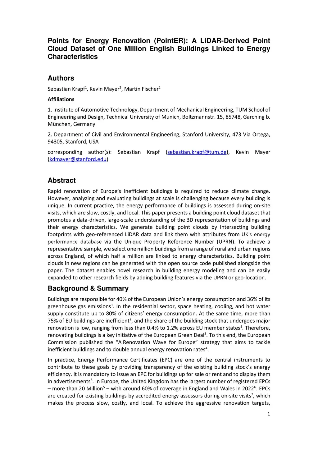 Points for Energy Renovation (PointER): A LiDAR-Derived Point Cloud
