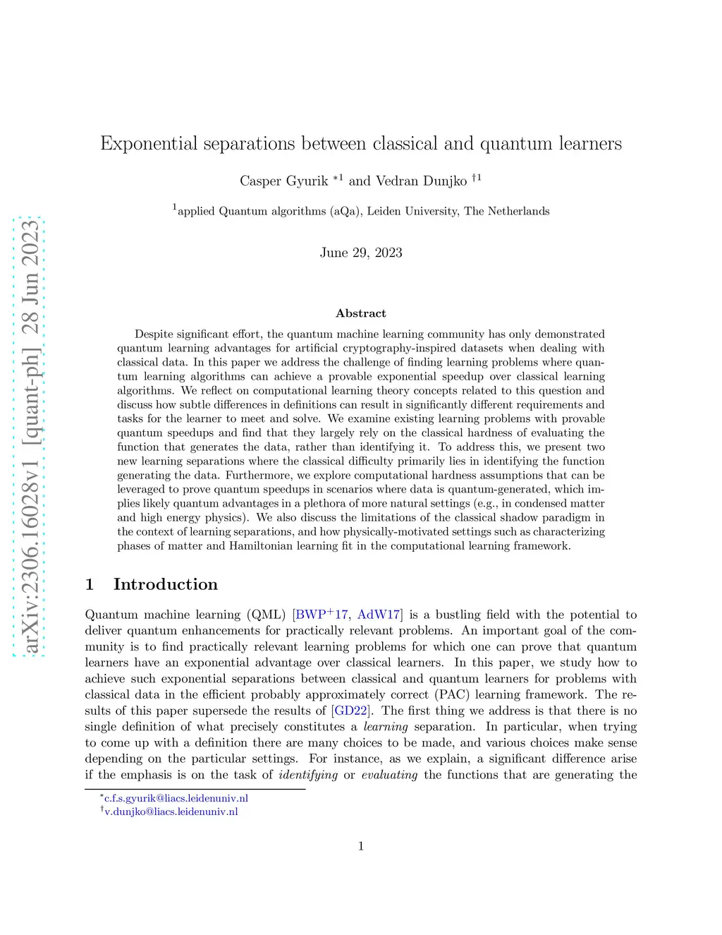 Despite significant effort, the quantum machine learning community has only demonstrated quantum learning advantages for artificial cryptography-inspired datasets when dealing with classical data. In this paper we address the challenge of finding learning problems where quantum learning algorithms can achieve a provable exponential speedup over classical learning algorithms. We reflect on computational learning theory concepts related to this question and discuss how subtle differences in definitions can result in significantly different requirements and tasks for the learner to meet and solve. We examine existing learning problems with provable quantum speedups and find that they largely rely on the classical hardness of evaluating the function that generates the data, rather than identifying it. To address this, we present two new learning separations where the classical difficulty primarily lies in identifying the function generating the data. Furthermore, we explore computational hardness assumptions that can be leveraged to prove quantum speedups in scenarios where data is quantum-generated, which implies likely quantum advantages in a plethora of more natural settings (e.g., in condensed matter and high energy physics). We also discuss the limitations of the classical shadow paradigm in the context of learning separations, and how physically-motivated settings such as characterizing phases of matter and Hamiltonian learning fit in the computational learning framework.