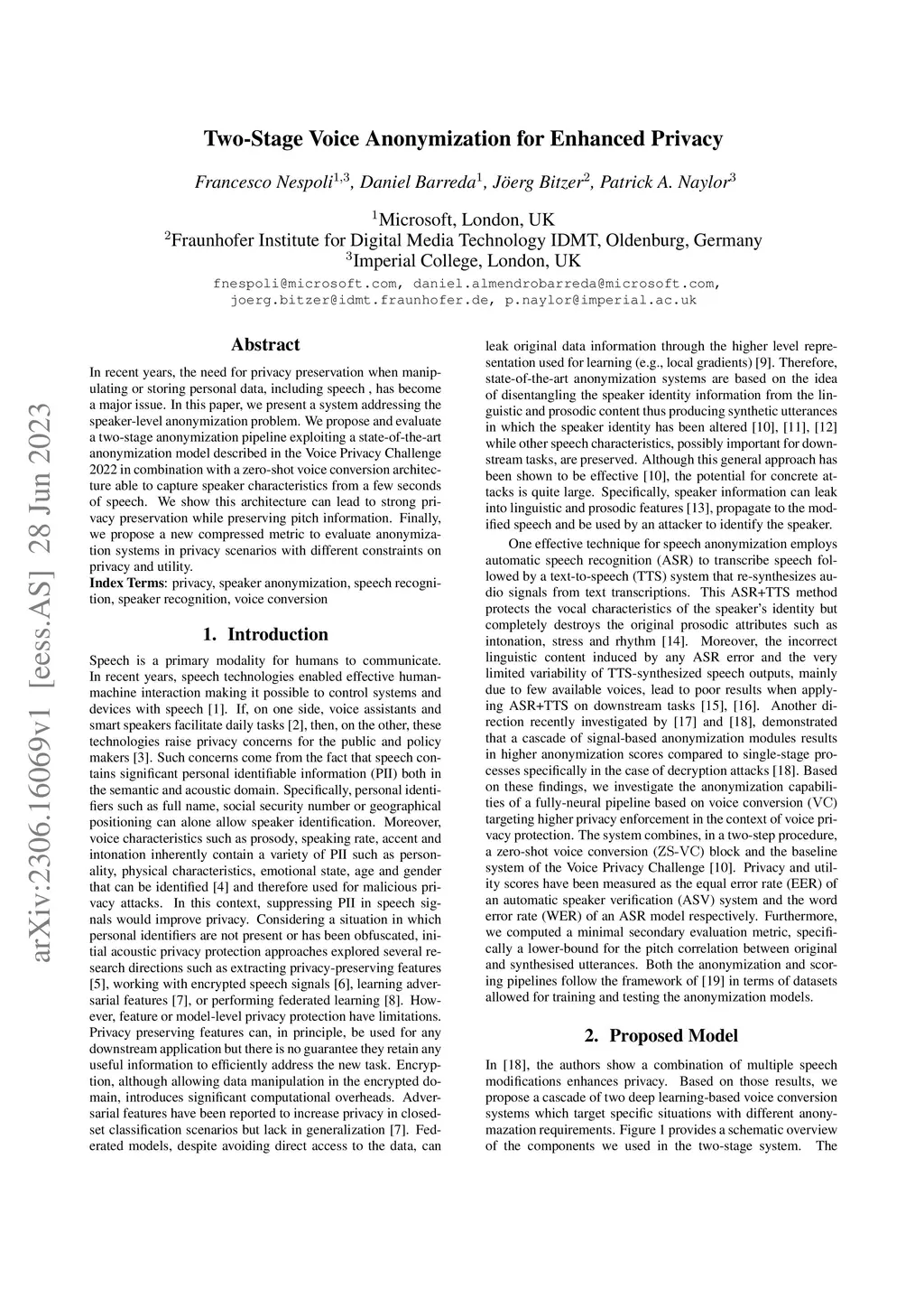 In recent years, the need for privacy preservation when manipulating or storing personal data, including speech , has become a major issue. In this paper, we present a system addressing the speaker-level anonymization problem. We propose and evaluate a two-stage anonymization pipeline exploiting a state-of-the-art anonymization model described in the Voice Privacy Challenge 2022 in combination with a zero-shot voice conversion architecture able to capture speaker characteristics from a few seconds of speech. We show this architecture can lead to strong privacy preservation while preserving pitch information. Finally, we propose a new compressed metric to evaluate anonymization systems in privacy scenarios with different constraints on privacy and utility.
