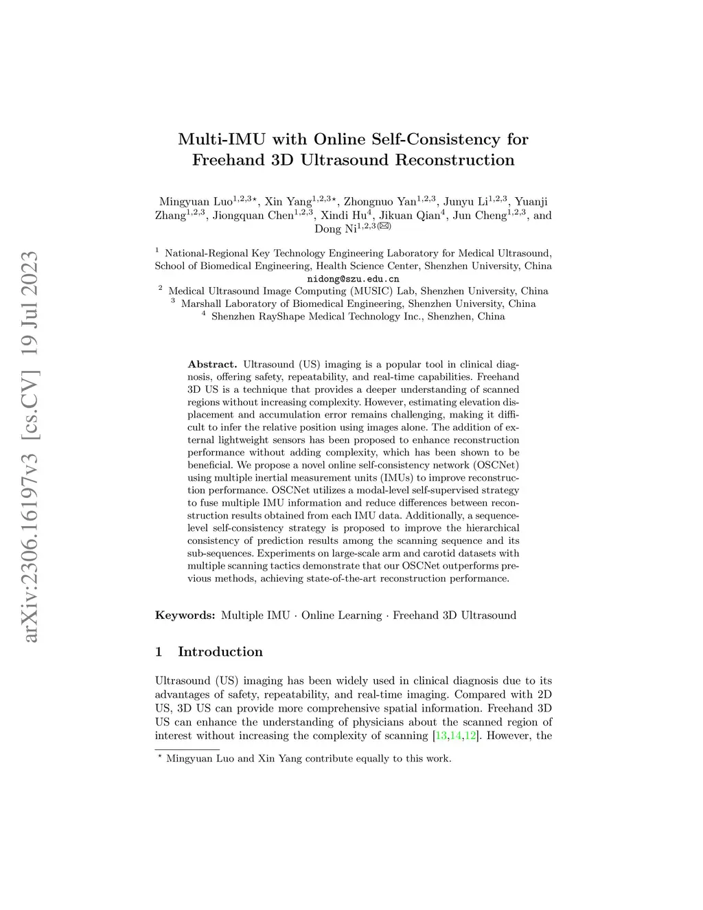 Multi-IMU with Online Self-Consistency for Freehand 3D Ultrasound