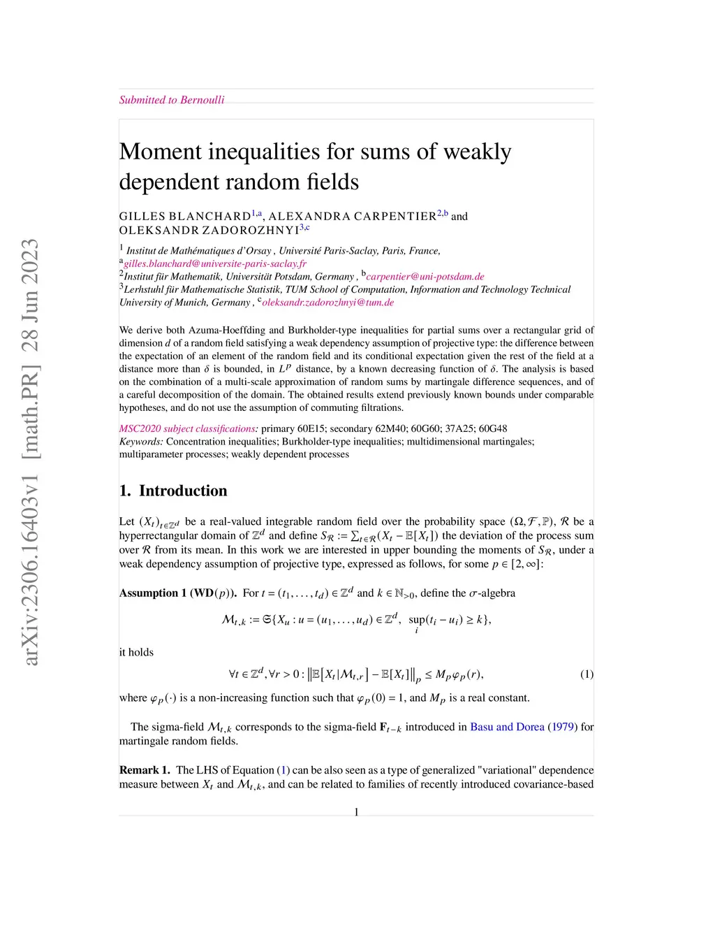 We derive both Azuma-Hoeffding and Burkholder-type inequalities for partial sums over a rectangular grid of dimension of a random field satisfying a weak dependency assumption of projective type: the difference between the expectation of an element of the random field and its conditional expectation given the rest of the field at a distance more than is bounded, in distance, by a known decreasing function of . The analysis is based on the combination of a multi-scale approximation of random sums by martingale difference sequences, and of a careful decomposition of the domain. The obtained results extend previously known bounds under comparable hypotheses, and do not use the assumption of commuting filtrations.