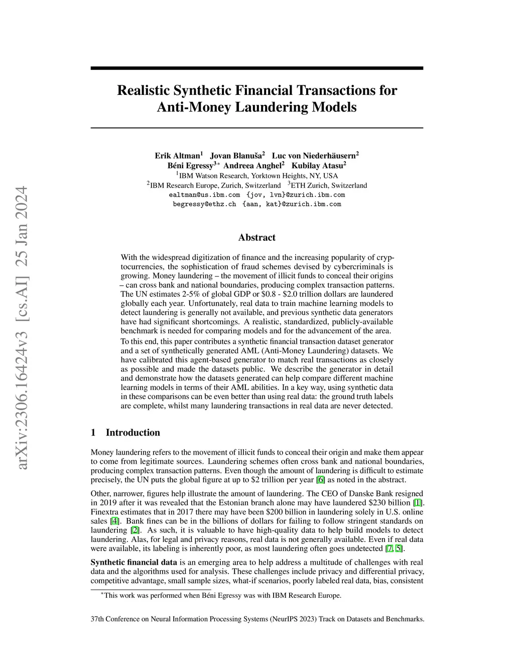 Realistic Synthetic Financial Transactions for Anti-Money Laundering