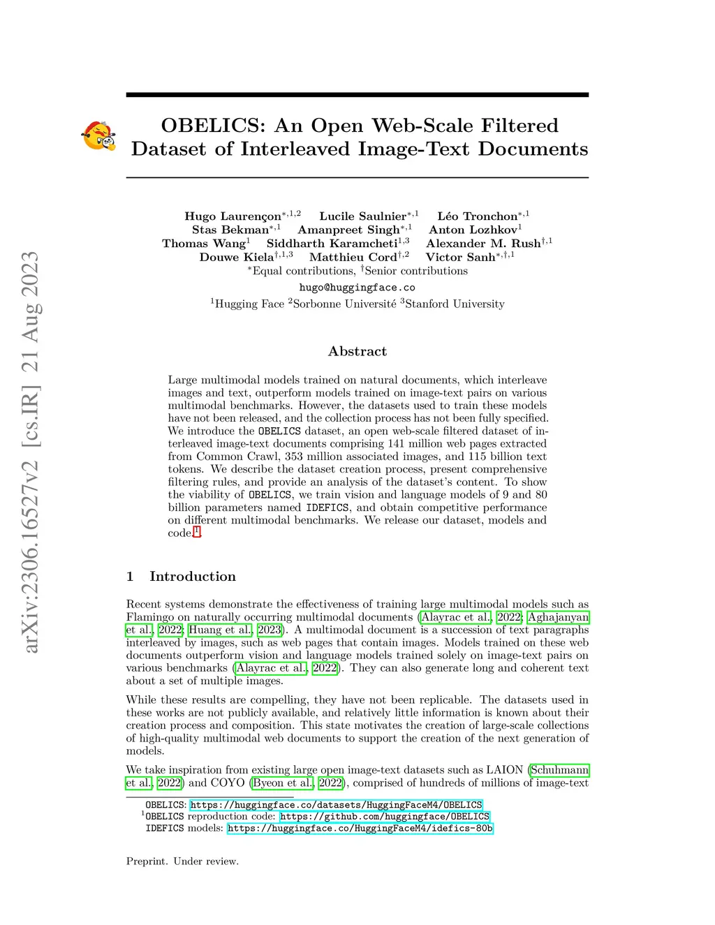 OBELICS: An Open Web-Scale Filtered Dataset of Interleaved Image-Text